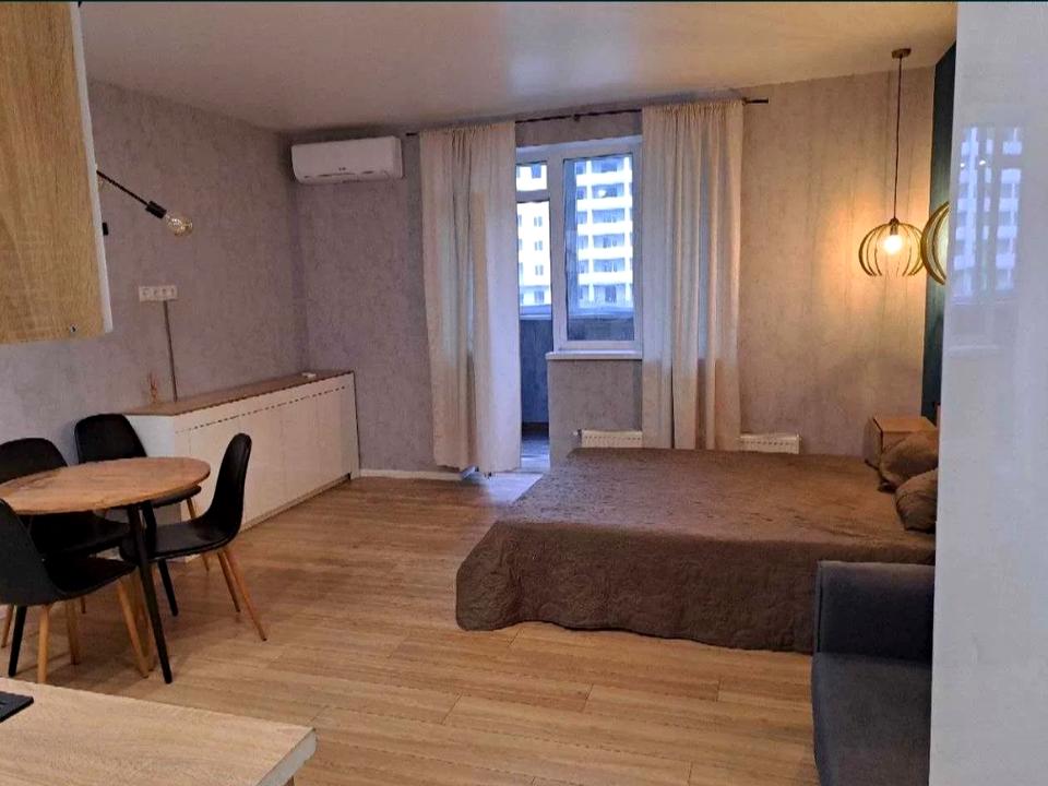 До вашої уваги пропонується 1-кімнатна квартира-студія в довгострокову оренду за адресою: вул, Чубинського, 8 б в ЖК "Софія Київська" , яка розташована на 1 житловому поверсі (2 загальний) 12 поверхового будинку .