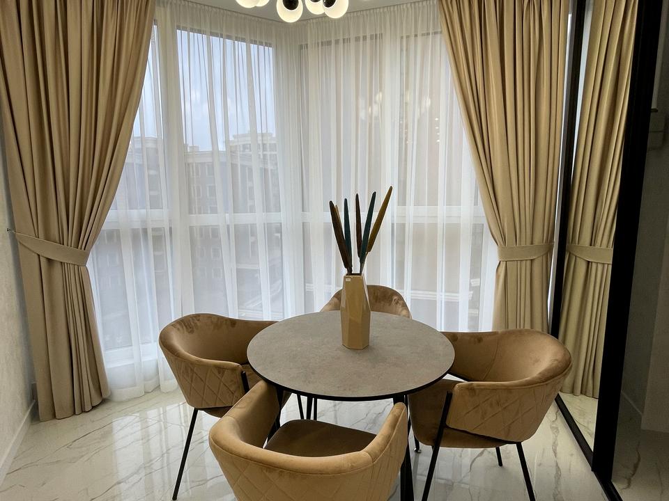 Дизайнерський інтер’єр у пастельних тонах створює атмосферу ніжності та спокою — саме тут хочеться заварити ранкову каву, слухати тишу та будувати плани на майбутнє.