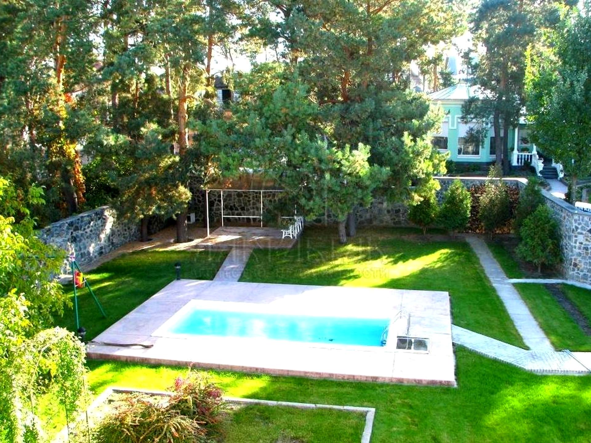 Унікальна земельна ділянка площею майже 20 соток вражає своєю красою, вона прикрашена соснами, ландшафтним дизайном та розкішними туями. На ділянці є фруктовий сад, басейн з підігрівом, та бесідка з мангалом. Периметр земельної ділянки огороджено забором з автоматичними воротами. На ділянці ростуть вікові сосни.