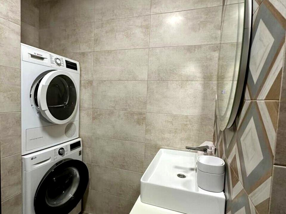 Квартира повністю укомплектована всім необхідним для комфортного проживання: холодильник, електрочайник, мікрохвильова піч, кавомашина, мультиварка, газова варильна поверхня + електрична духова шафа, сучасна витяжка, пральна та сушильна машини, дзеркало з підсвіткою та підігрівом, душ з гідромасажем.