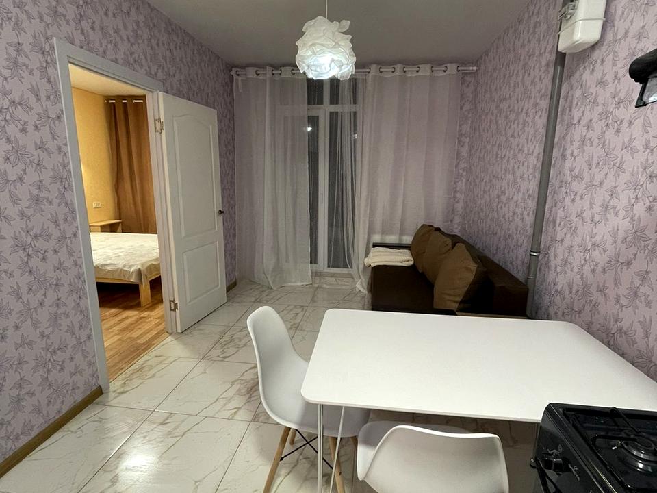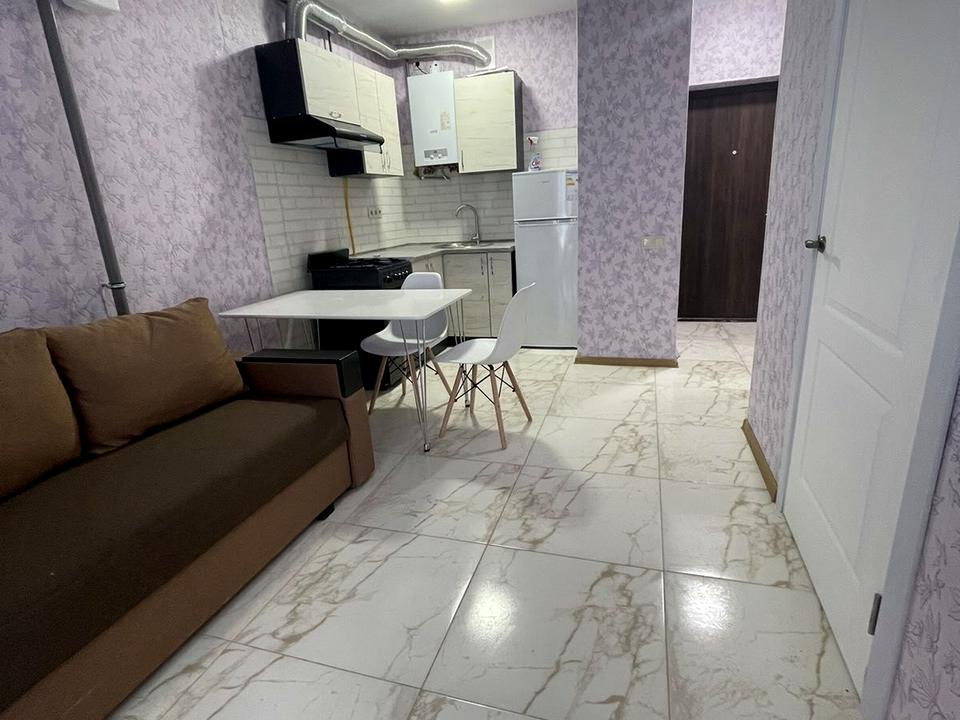 В квартирі 1 кімната, Тип будинку - Спец. проект. Кухонна плита газова. Є балкон. У квартирі є Пральна машина, Ванна, Холодильник, Посуд. Будинок побудований в 2021 році. Загальний стан квартири - З ремонтом. Гаряча вода - газовий котел. Кількість санвузлів: 1. Тип кухні - кухня-студія. Кількість спален: 1. Комісія за послуги 100 %
