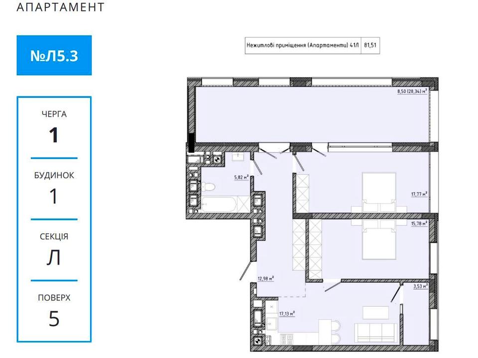5 поверх | 81,51 м² | 65 000 $