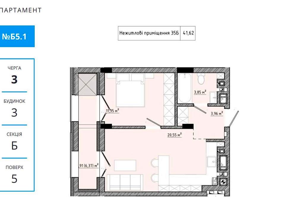 5 поверх | 41.62 м² | 29 999 $