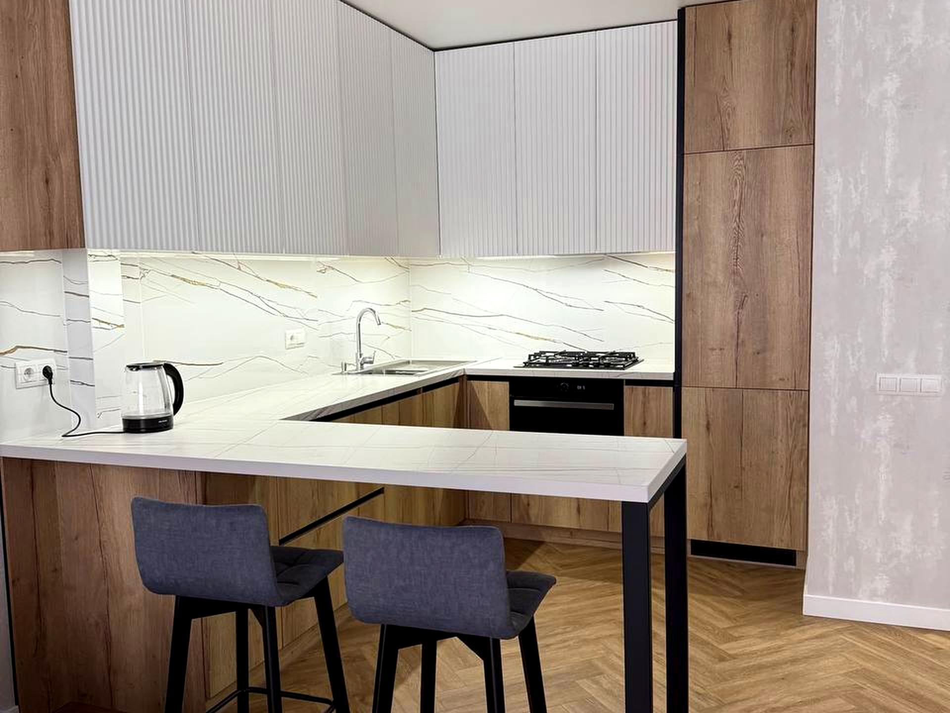 В квартирі 1 кімната, Технологія будівництва - Цегляна, Тип будинку - Спец. проект. Планування кімнат Роздільне. Є газ. У квартирі є Підігрів підлоги, Кондиціонер, Пральна машина, Сушильна машина, Душова кабіна, Холодильник, Мікрохвильовка, Посудомийна машина. Загальний стан квартири - З ремонтом. Гаряча вода - газовий котел. Кількість санвузлів: 1. Тип кухні - кухня-студія. Кількість спален: 1. Комісія за послуги 2 %