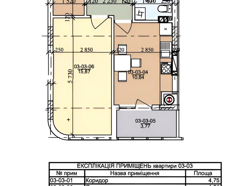 – ізольована кімната — 15,87 м²;