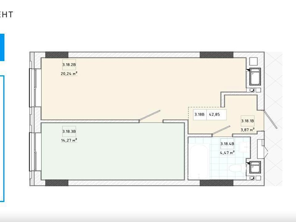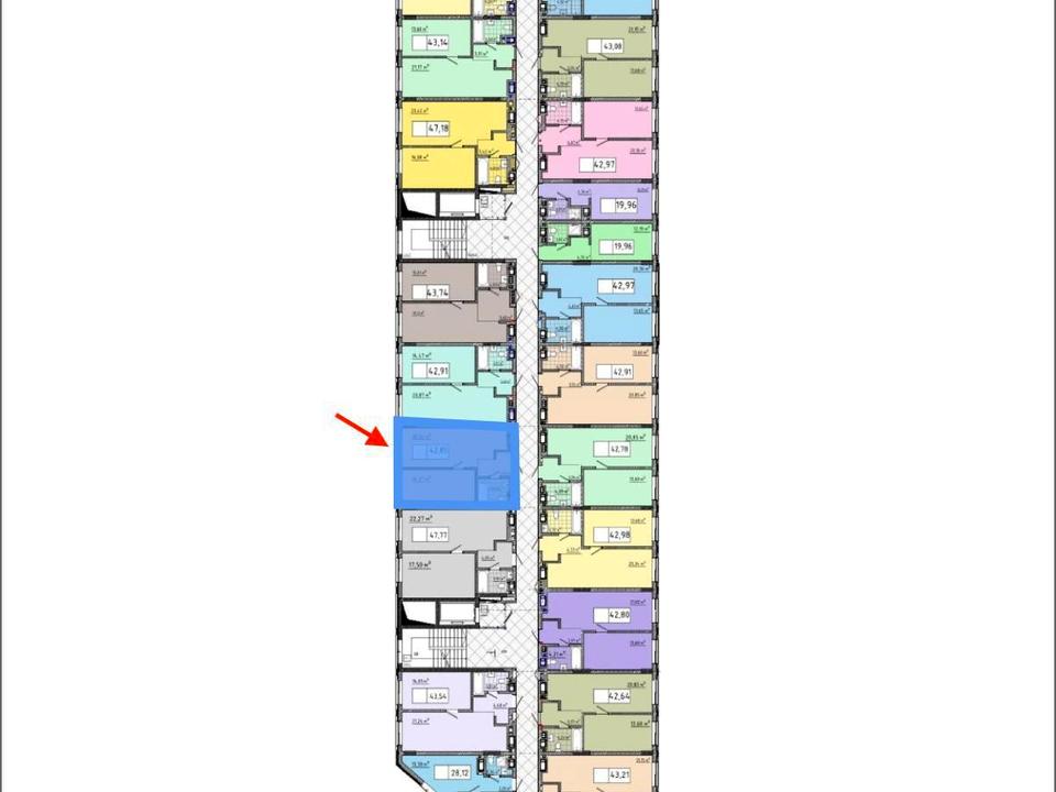 Площа — 42.85 м²