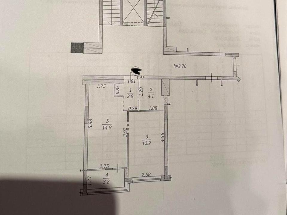 В квартирі 1 кімната, висота стелі 2.7 метра, Тип будинку - Спец. проект. Є газ, кухонна плита газова. Є балкон. Загальний стан квартири - Без ремонту. Гаряча вода - газовий котел. Кількість санвузлів: 1. Тип кухні - кухня-студія. Кількість спален: 1. Комісія за послуги 5 %