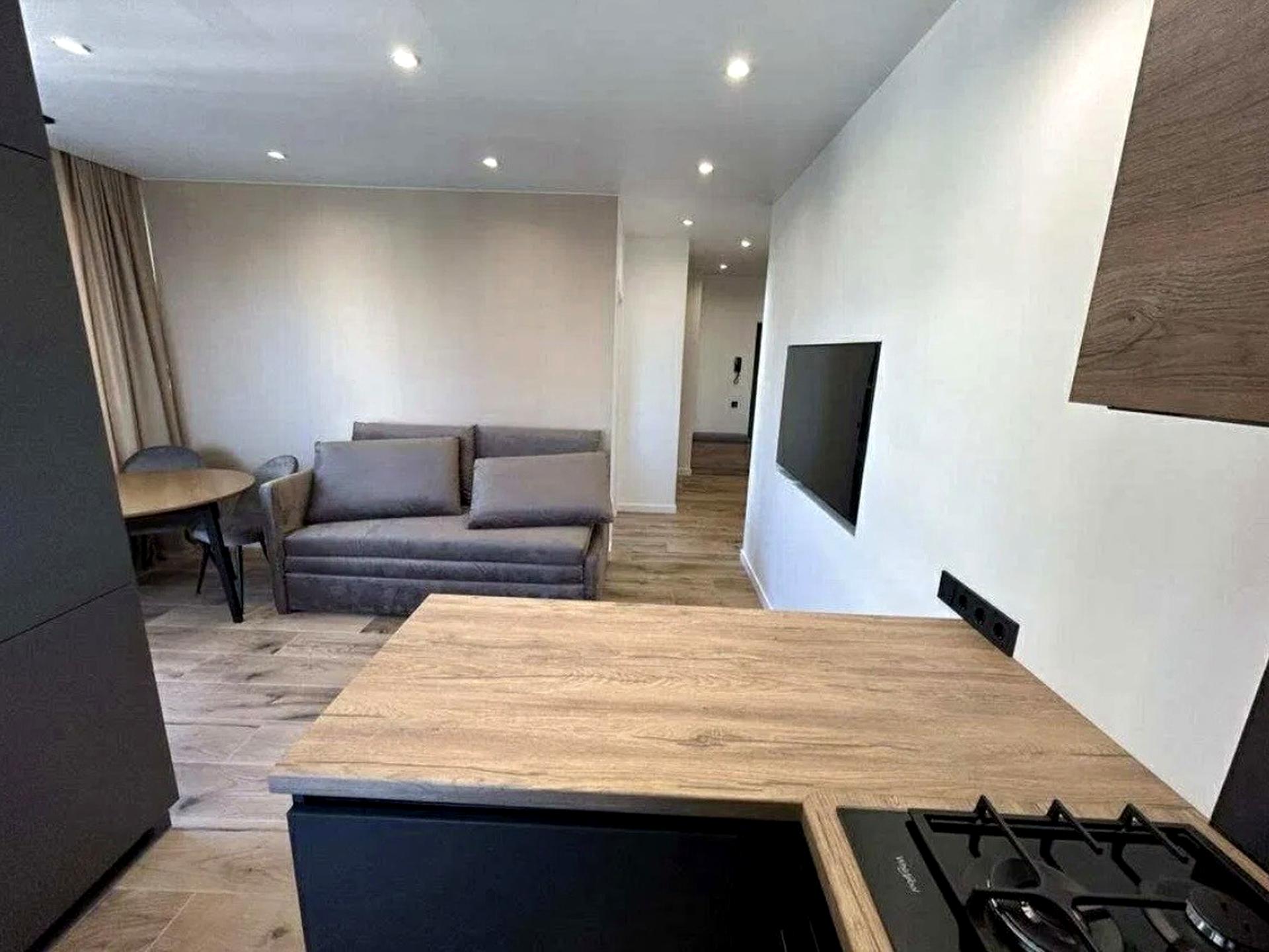 Квартира з якісним дизайнерським ремонтом, продуманим та зручним плануванням. Простора кухня-вітальня з виходом на відкритий балкон, ізольована спальня, суміжний санвузол та окрема гардеробна кімната.