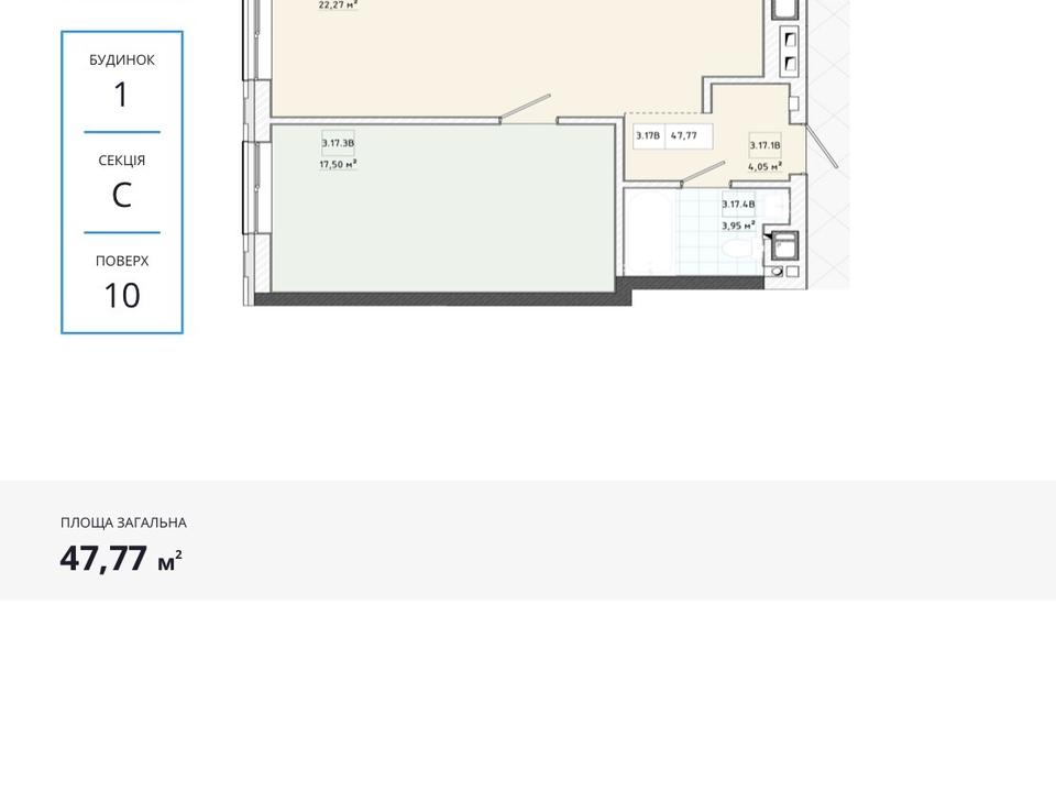 Площа 47.77 метрів