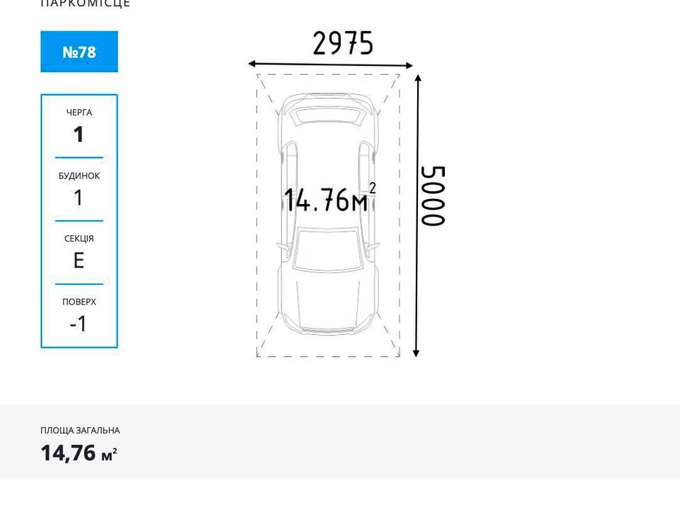 Паркомісце на паркінгу. Тип паркінгу: підземний. Під легкове авто. Площа 14.76кв. м. Кількість машиномісць: 1. Терміново, Прямий продаж. Без комісії