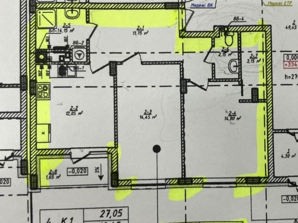 Квартира на 5-му поверсі загальною площею 64.15 м². Простора кухнею із заскленим балконом, дві ізольовані кімнати та два санвузла!