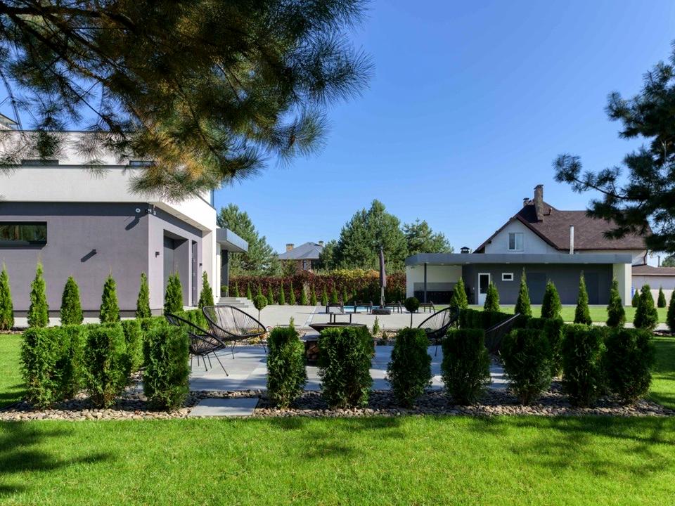 Зона для багаття передбачене місце для мікро городу. На території газон, високі хвойні дерева, туї, декоративні рослини, автополив Hunter. Фасадне освітлення будинку та парканів, вся ділянка висвітлюється (автоматизовано). З дільниці виїзд на дві вулиці. Усі ворота автоматизовані, керування з телефону.