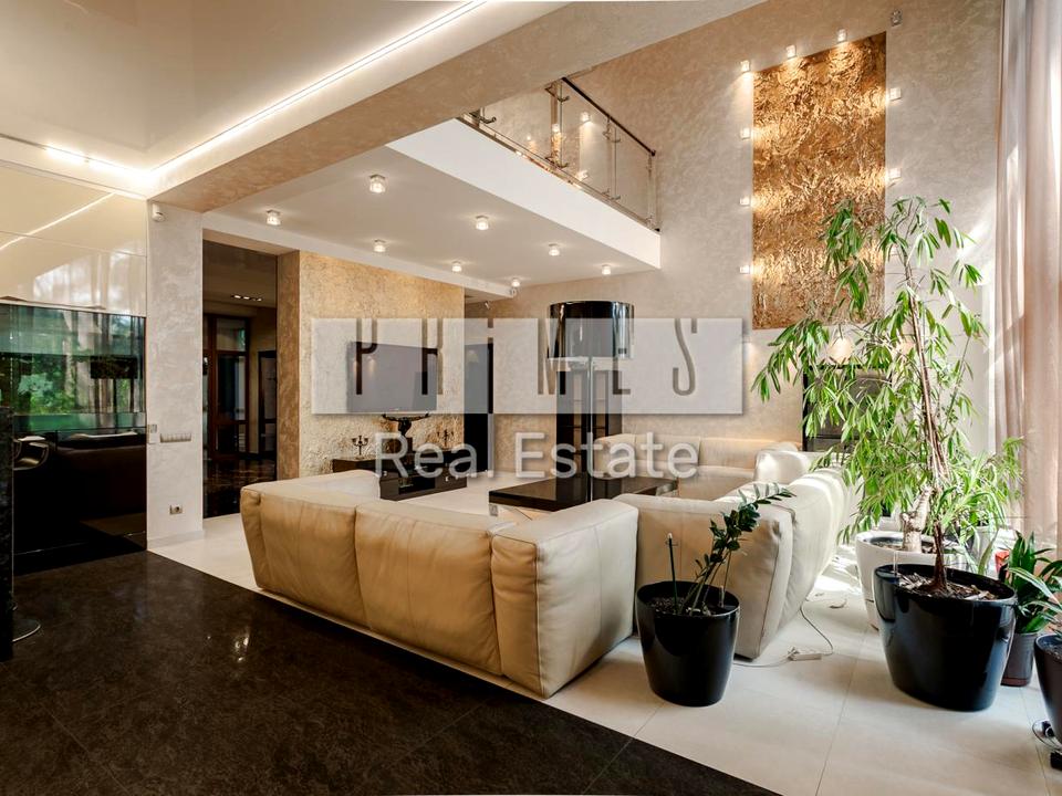Пропонуємо вашій увазі розкішний будинок площею 700 м, розташований біля живописного місця всього за 7 км від Києва. Цей просторий маєток поєднує в собі сучасні технології, елегантний дизайн та комфорт для найвибагливіших.