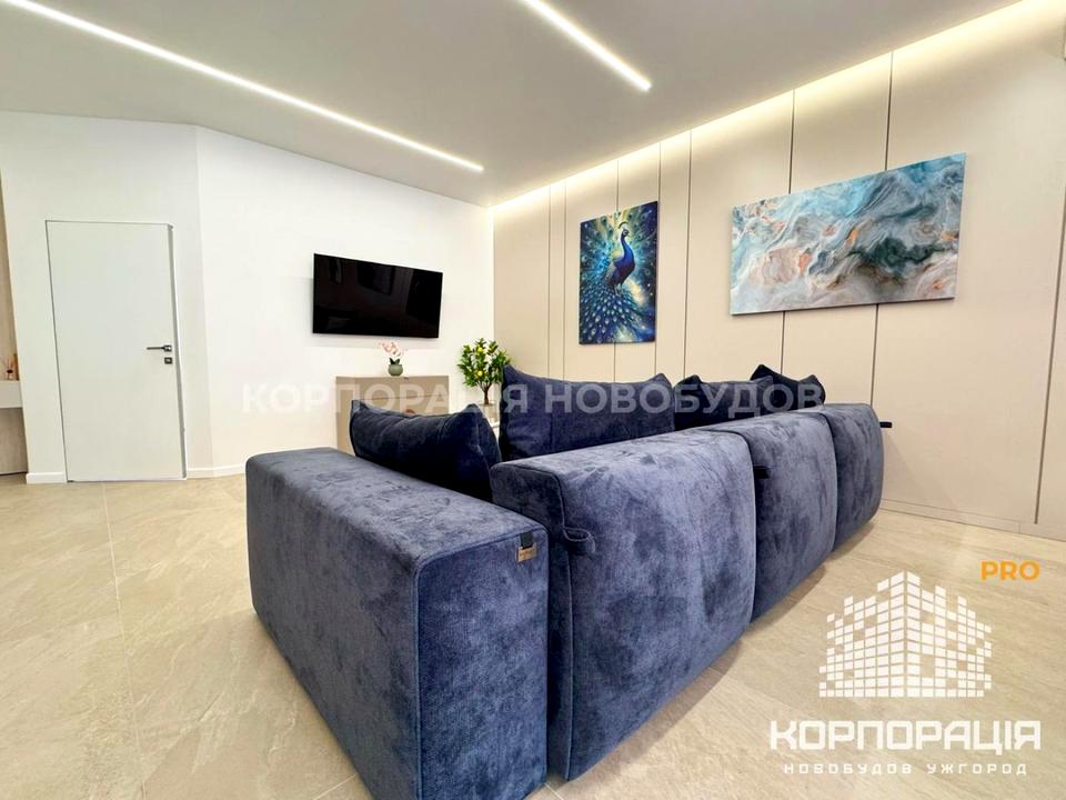 Зроблений авторський ремонт, декоративні панелі та штукатурка, якісна столярка, підвісні стелі, стильні люстри та трекові світильники, підсвітка, штори і тюль за індивідуальним пошиттям.
