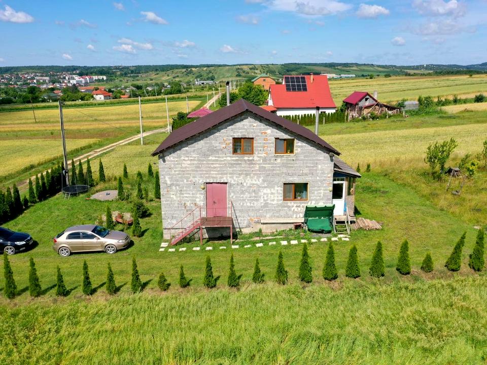 Будинок, 2 поверхи, 4 кімнати. Матеріал стін - шлакоблок. Під'їзд до будинку - грунт. Площа ділянки 25 соток. Планування кімнат Роздільне. Покриття підлоги - плитка. В будинку 1 балкон. Тип кухні - кухня-студія. У будинку є Телевізор, Підігрів підлоги, Камін, Пральна машина, Ванна, Холодильник, Мікрохвильовка, Сад/город. Своя каналізація. Загальний стан будинку - Частковий ремонт. Газу немає. Холодна вода - свердловина. Гаряча вода - електричний бойлер. Опалення котел твердопаливний. Кількість санвузлів: 2. Покриття даху - металочерепиця. Комісія за послуги 5 %