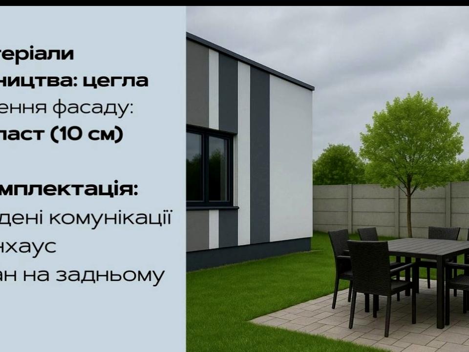 Таунхаус, 1 поверх, 2 кімнати. Матеріал стін - цегляний, фундамент будинку - залізобетон, матеріал перекриттів - дерево. Під'їзд до будинку - асфальт. Площа ділянки 2 сотки. Планування кімнат Роздільне. В будинку немає балконів. Тип кухні - кухня-студія. Немає підвалу. У будинку є Ванна, Зона мангалу, Тераса. Будинок побудований в 2025 році. Своя каналізація. Загальний стан будинку - Без ремонту. Холодна вода - свердловина. Гарячої води немає. Опалення немає. Кількість санвузлів: 1. Покриття даху - металочерепиця. Автономної електроенергії немає. Інтернету немає. Власник погоджується продати по програмі єОселя. Власник погоджується продати по програмі єВідновлення. Без комісії