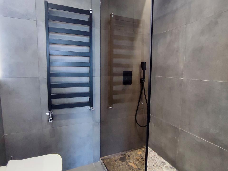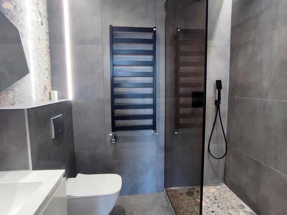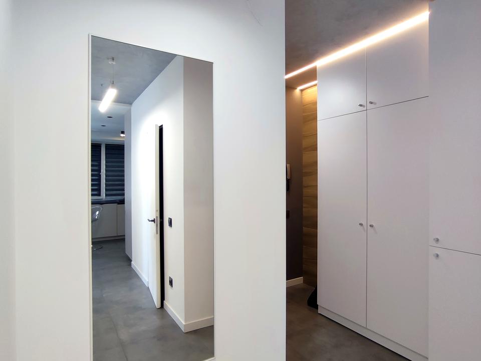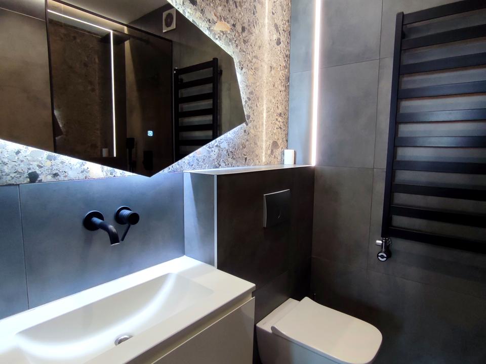 Стильна сучасна квартира у новому будинку, індивідуальне опалення, кондиціонер, кухня-студіо та спальня, євроремонт, сучасні меблі та побутова техніка.