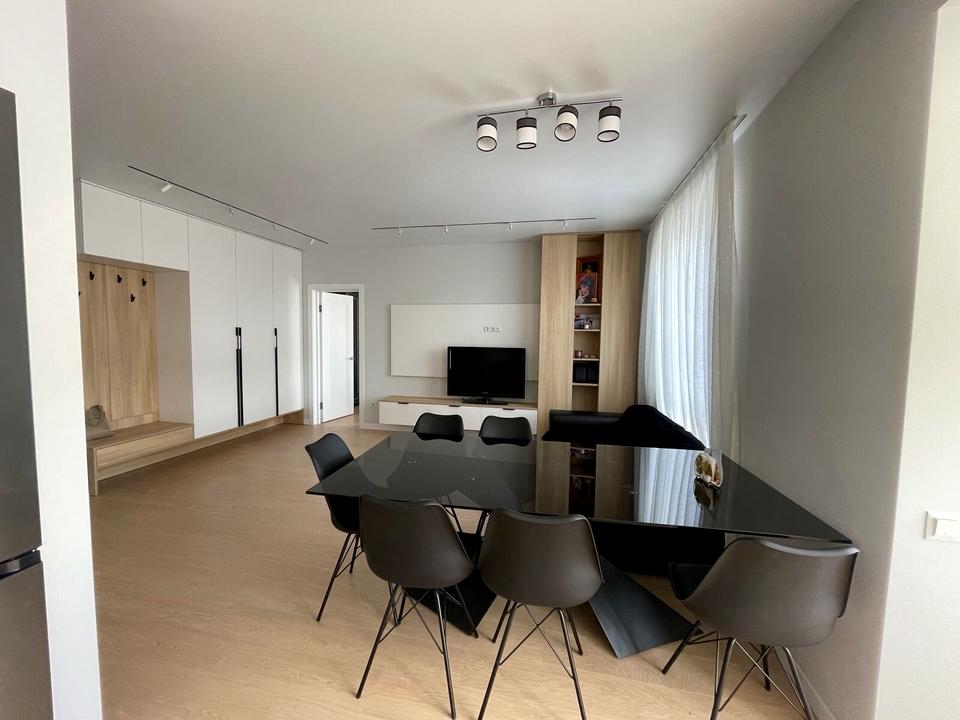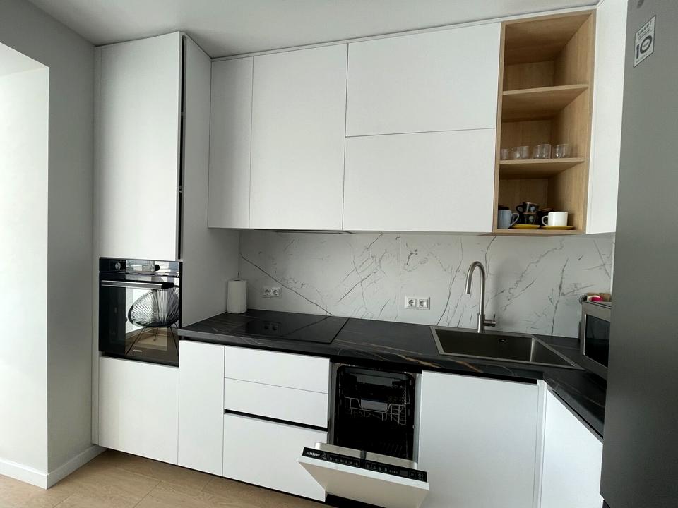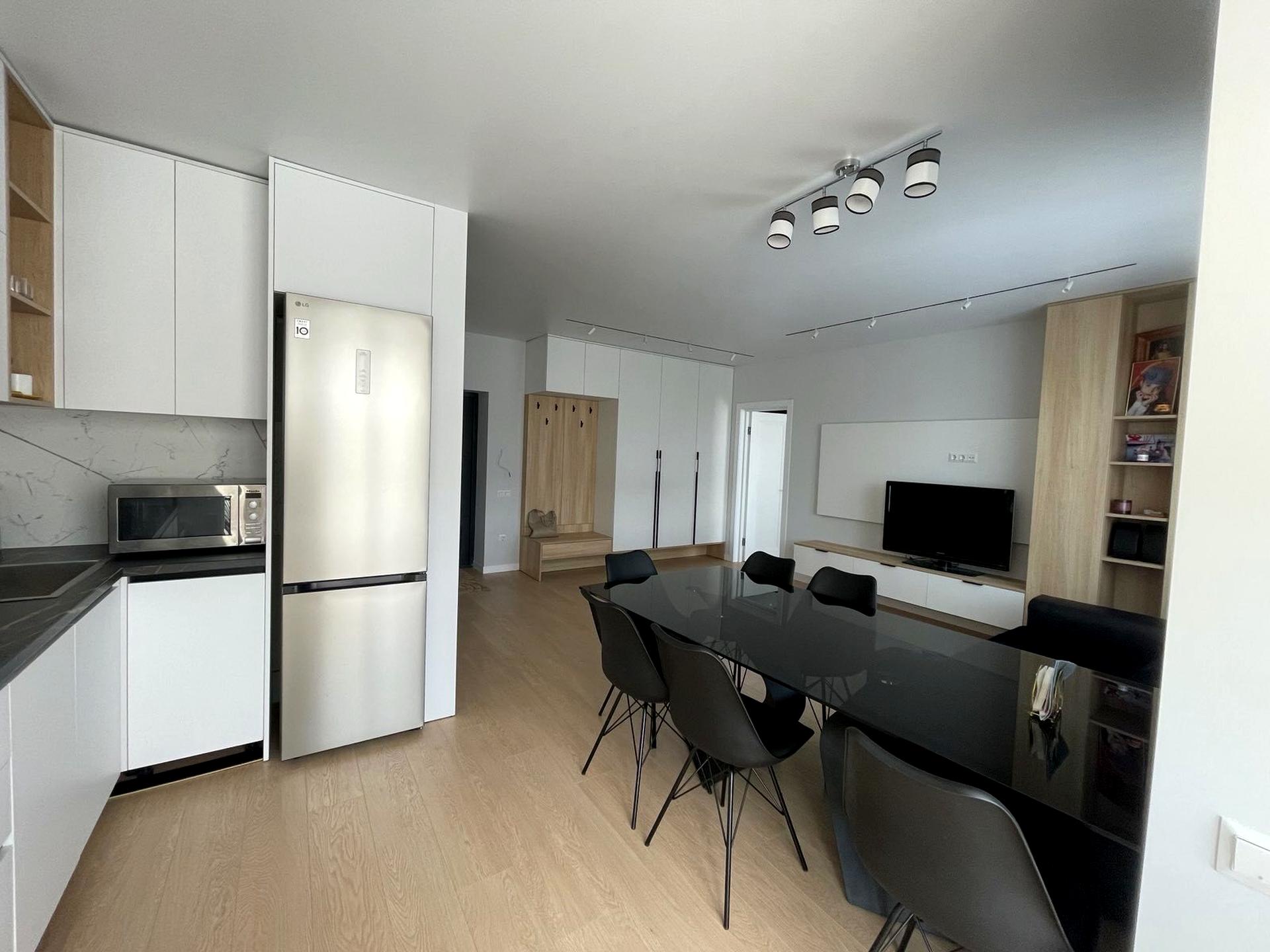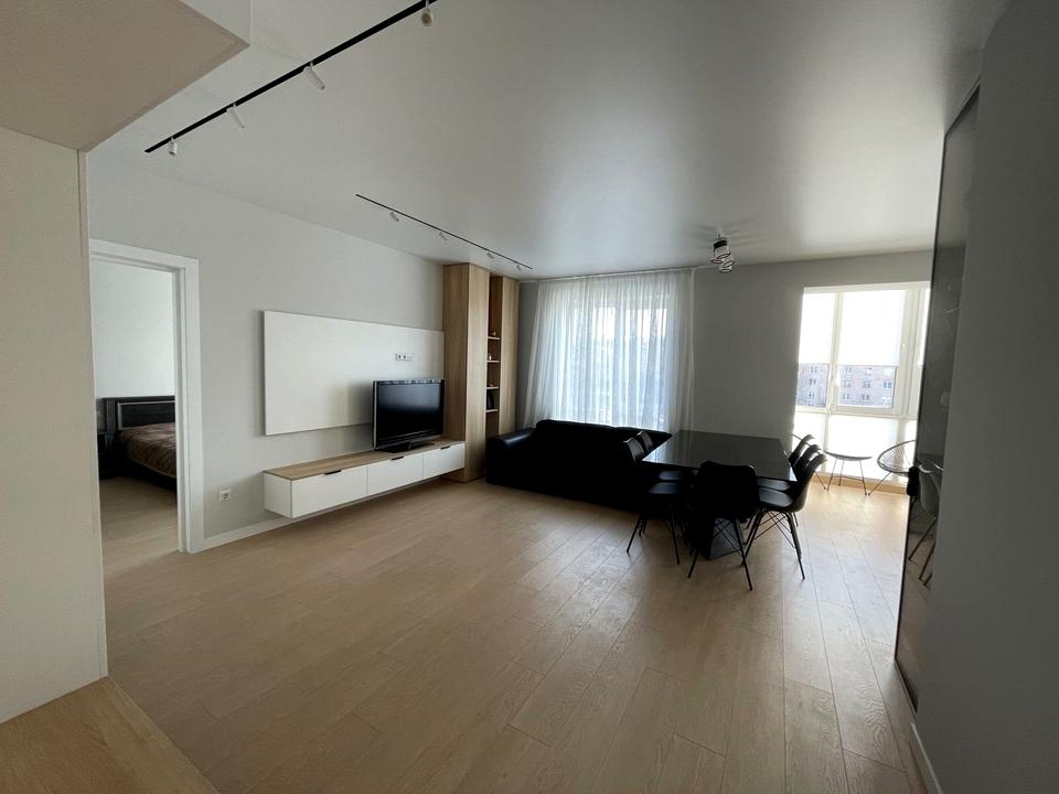 Здається в оренду нова квартира у будинку клубного типу, зручне планування, простора кухня-студія та окрема спальня, індивідуальне опалення, євроремонт, нові меблі та побутова техніка.