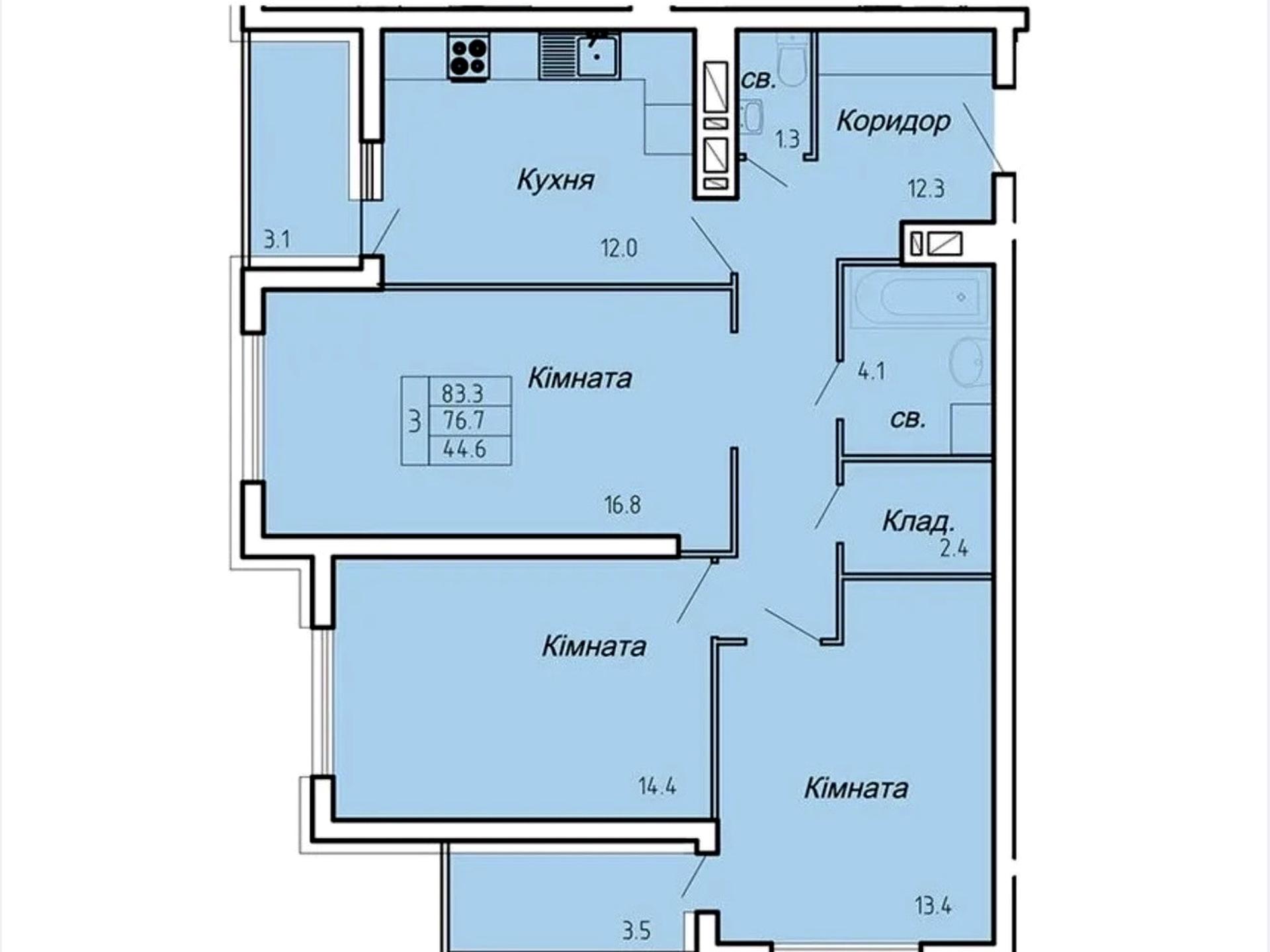 83.3 / 44.6 / 13 м²