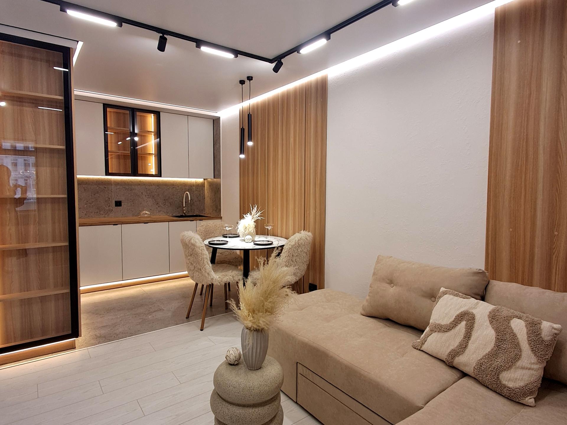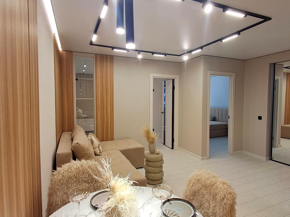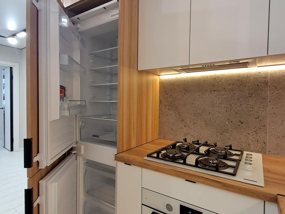 В квартирі 2 кімнати, висота стелі 2.55 метра, Тип будинку - Спец. проект. Є газ, кухонна плита газова. Є балкон. У квартирі є Підігрів підлоги, Пральна машина, Ванна, Холодильник. Будинок побудований в 2017 році. Загальний стан квартири - З ремонтом. Гаряча вода - газовий котел. Кількість санвузлів: 1. Інтернет дротовий (кабельний). Працює без світла - вода, газ, інтернет. Тип кухні - кухня-студія. Кількість спален: 2. Комісія за послуги 3 %