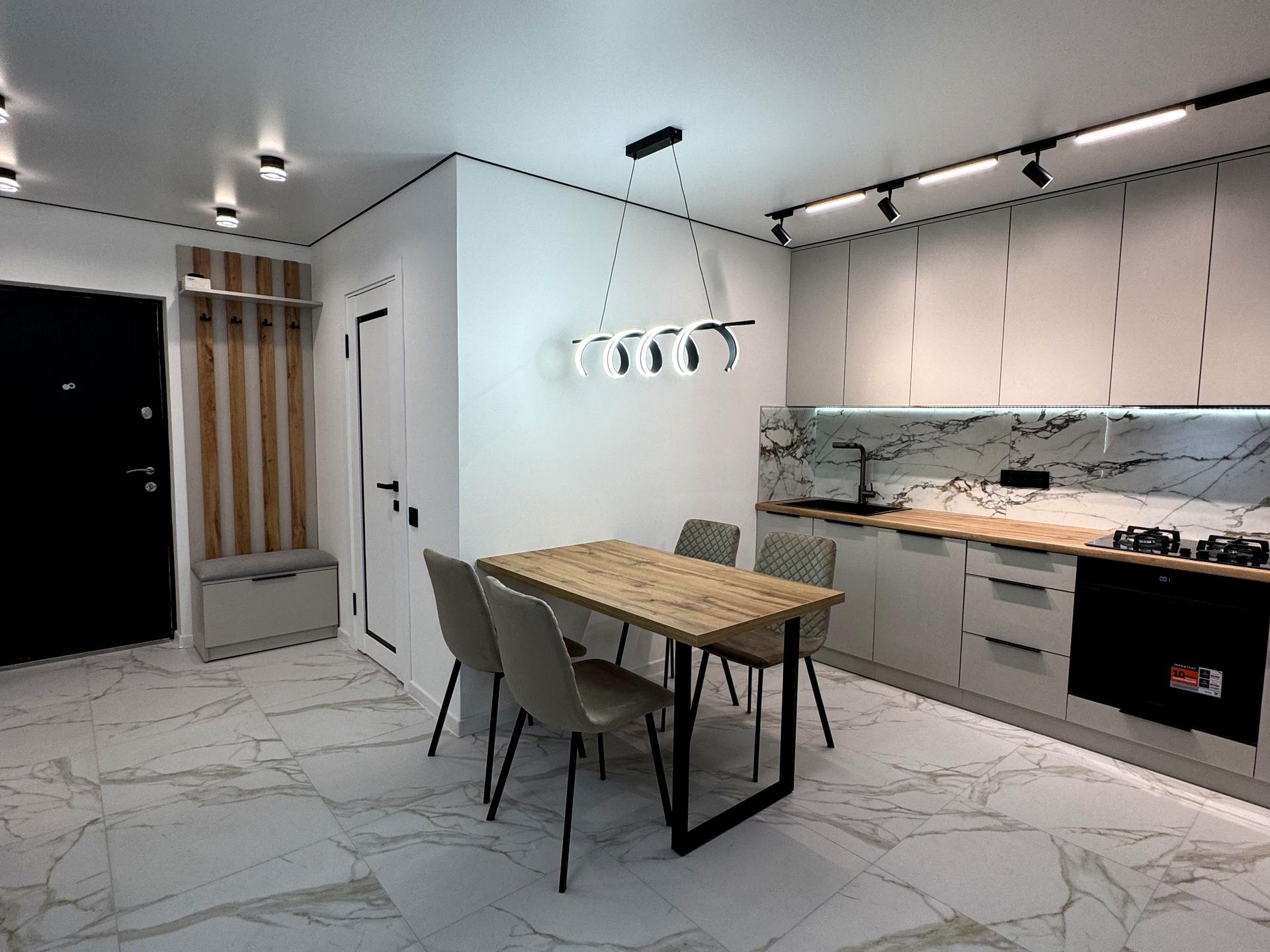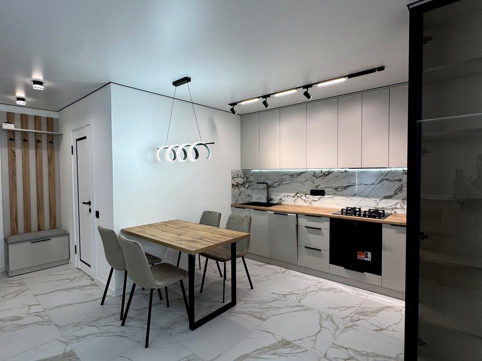 В квартирі 2 кімнати, Тип будинку - Спец. проект. Є газ, кухоння плита комбінована. Є балкон. У квартирі є Підігрів підлоги, Пральна машина, Ванна, Холодильник, Посудомийна машина. Будинок побудований в 2023 році. Загальний стан квартири - З ремонтом. Гаряча вода - газовий котел. Кількість санвузлів: 1. Тип кухні - кухня-студія. Кількість спален: 2. Комісія за послуги 3 $