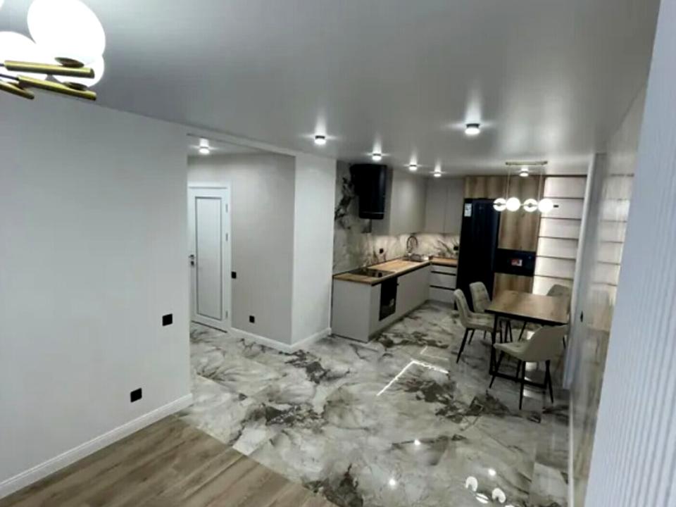 Квартира розташована на 7 поверсі 9 поверхового будинку. Загальна площа 57 кв.м, гарне планування, кухня-вітальня, дві окремі кімнати, просторий санвузол. У квартирі зроблено сучасний ремонт, меблями облаштована кухонна зона та спальня.