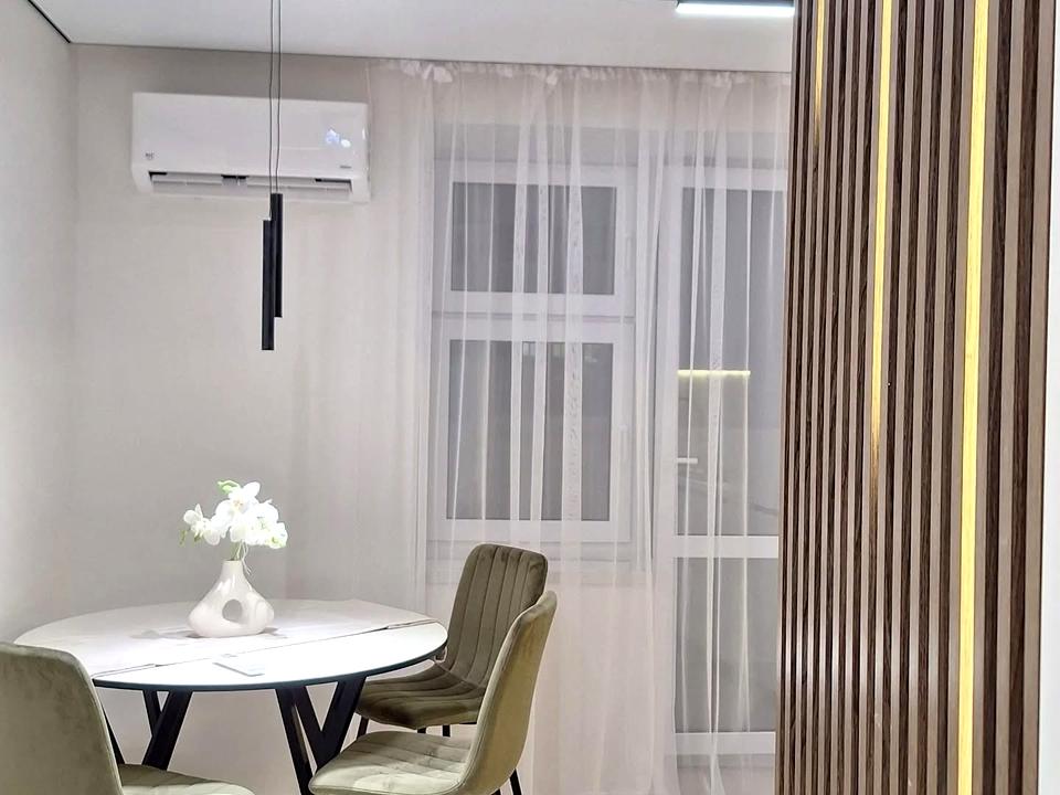 В квартирі 1 кімната, висота стелі 2.6 метра, Технологія будівництва - Цегляна, Тип будинку - Спец. проект. Є газ. Є балкон. У квартирі є Кондиціонер, Ванна, Холодильник. Будинок побудований в 2021 році. Загальний стан квартири - З ремонтом. Гаряча вода - газовий котел. Кількість санвузлів: 1. Тип кухні - кухня-студія. Кількість спален: 1. Комісія за послуги 3 %