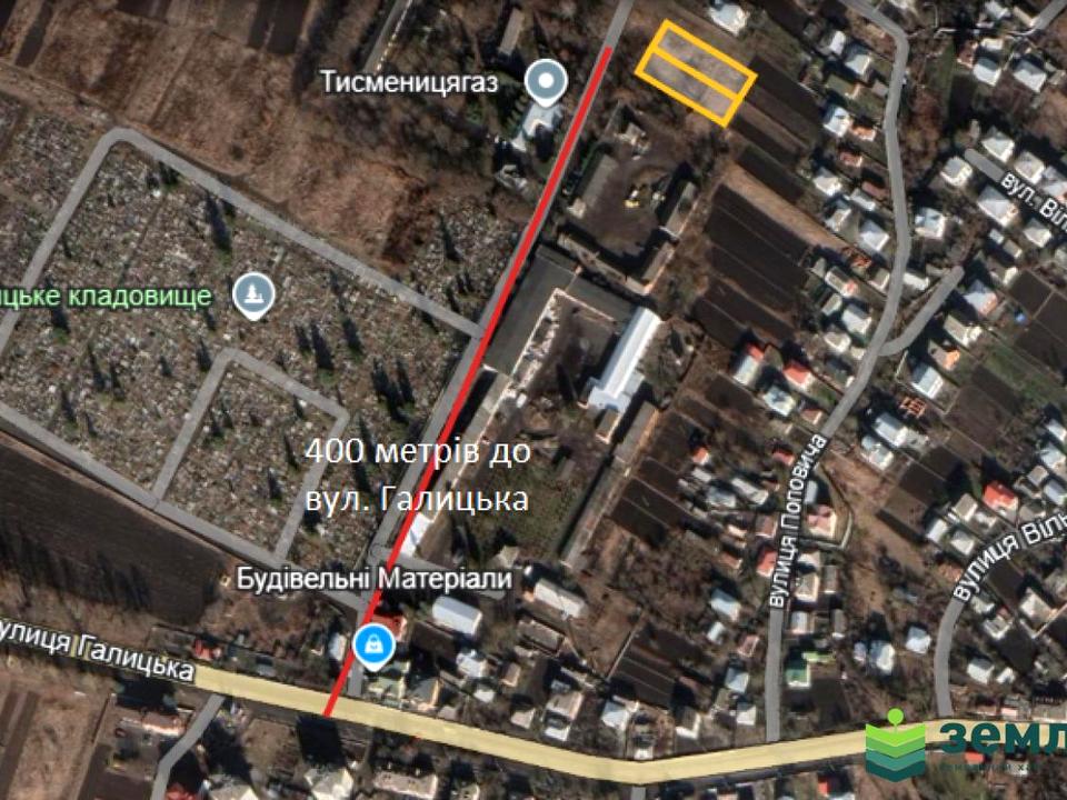 Продаються дві земельні ділянки загальною площею 20 соток в м. Тисмениця, ур. Біля гаражів ВАТ "Тисменицягаз"