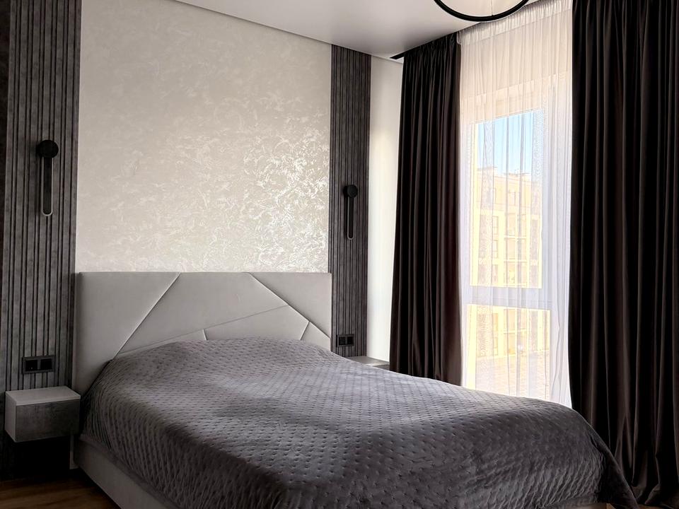В квартирі 1 кімната, висота стелі 2.8 метра, Тип будинку - Спец. проект. Є газ, кухонна плита газова. Є балкон. У квартирі є Телевізор, Підігрів підлоги, Кондиціонер, Пральна машина, Душова кабіна, Холодильник, Мікрохвильовка, Посудомийна машина. Будинок побудований в 2021 році. Загальний стан квартири - З ремонтом. Гаряча вода - газовий котел. Кількість санвузлів: 1. Інтернет оптоволоконний. Тип кухні - кухня-студія. Кількість спален: 1. Комісія за послуги 50 %