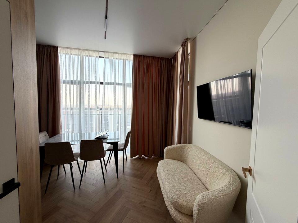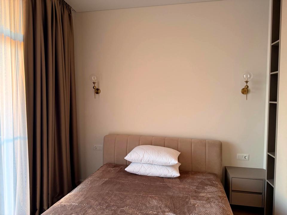 В квартирі 1 кімната, Тип будинку - Спец. проект. Немає газу, кухонна плита електрична. Є балкон. У квартирі є Телевізор, Підігрів підлоги, Кондиціонер, Пральна машина, Ванна, Холодильник, Мікрохвильовка, Посудомийна машина, Посуд. Будинок побудований в 2024 році. Загальний стан квартири - З ремонтом. Гаряча вода - електричний бойлер. Кількість санвузлів: 1. Інтернет оптоволоконний. Тип кухні - окрема кухня. Кількість спален: 1