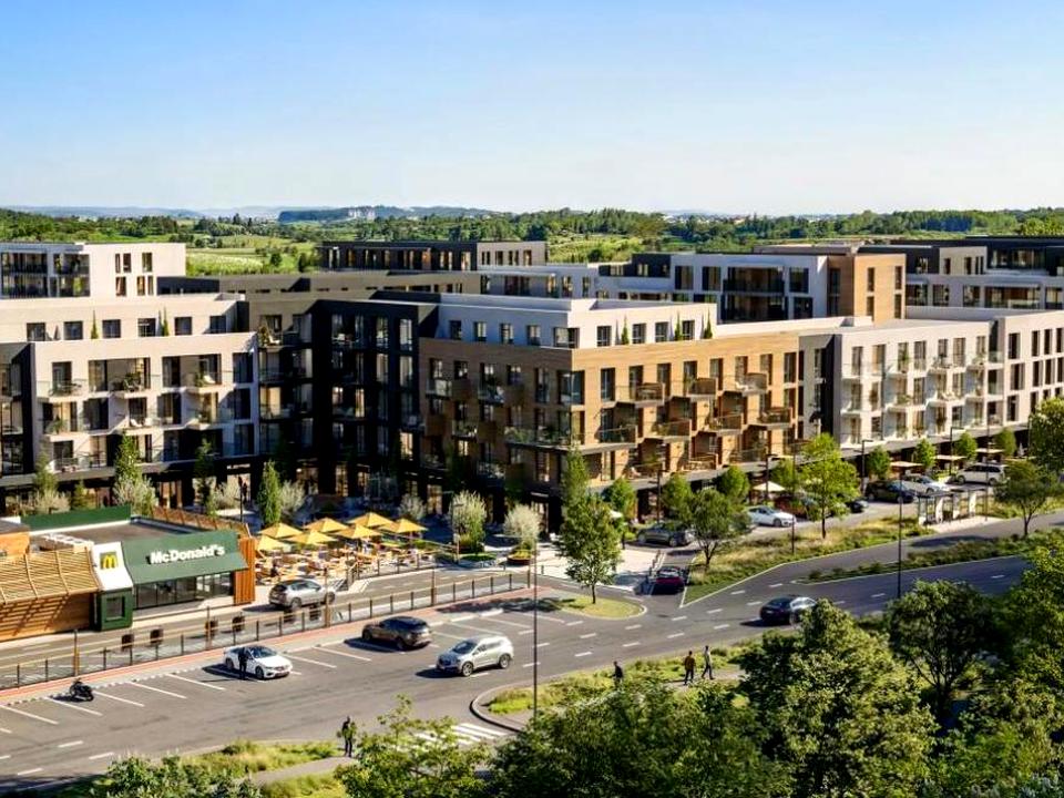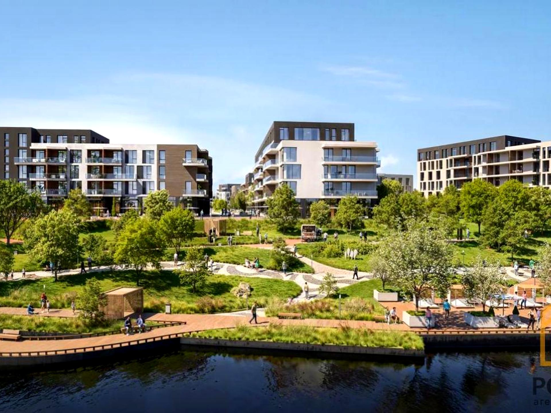 Близько 60% території займають зелені простори: парки, BBQ-зони, прогулянкові алеї та місця відпочинку біля річки Уж. Малоповерхова забудова (4–7 поверхів) пропонує сучасні планування, газове опалення, стильні лобі, ліфти та закриту територію, що гарантує приватність і безпеку.