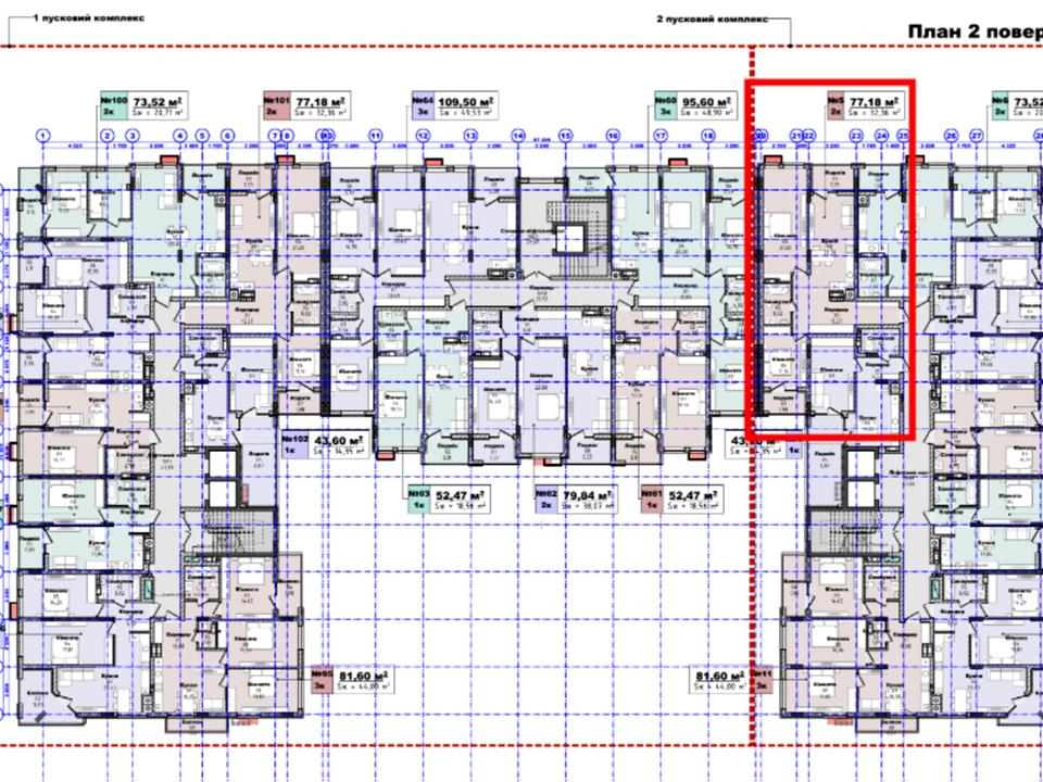 Площа 77,18м2 розташована на 2 поверсі.