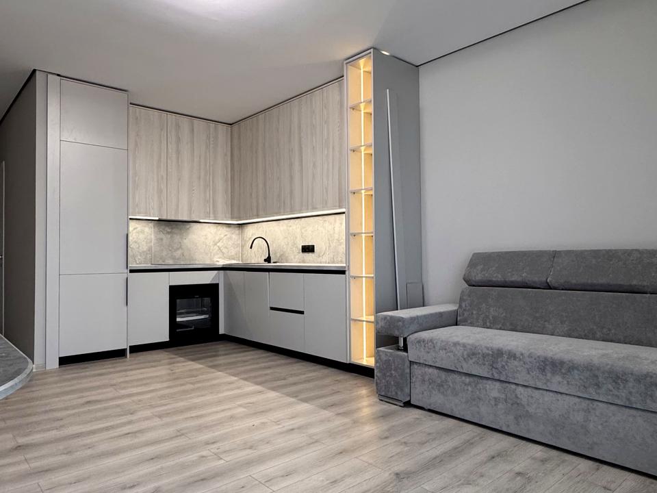 В квартирі 1 кімната, Тип будинку - Спец. проект. Немає газу, кухонна плита електрична. Є балкон. У квартирі є Телевізор, Кондиціонер, Пральна машина, Ванна, Холодильник, Посудомийна машина. Будинок побудований в 2025 році. Загальний стан квартири - З ремонтом. Гаряча вода - електричний бойлер. Кількість санвузлів: 1. Інтернет оптоволоконний. Тип кухні - кухня-студія. Кількість спален: 1. Комісія за послуги 2 %