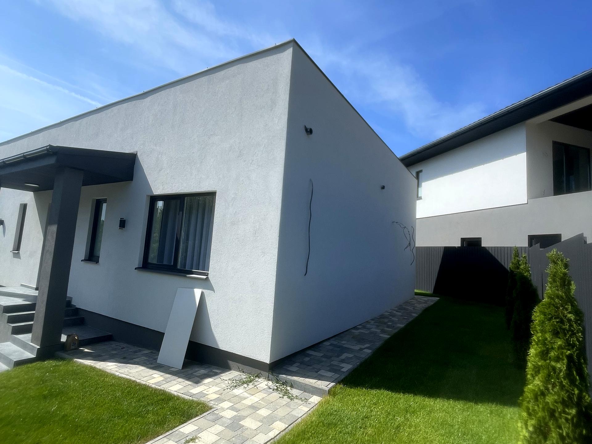 Будинок, 1 поверх, 3 кімнати. Матеріал стін - газоблок, фундамент будинку - залізобетон, матеріал перекриттів - монолітний залізобетон. Під'їзд до будинку - асфальт. Площа ділянки 4 сотки. Висота стелі 3 метра. Планування кімнат Роздільне. Покриття підлоги - ламінат. В будинку немає балконів. Тип кухні - кухня-студія. Немає підвалу. У будинку є Телевізор, Кабельне ТБ, Супутникове ТБ, Підігрів підлоги, Камін, Пральна машина, Душова кабіна, Ванна, Холодильник, Мікрохвильовка, Посудомийна машина, Газон, Сад/город, Зона мангалу, Тераса. Будинок побудований в 2025 році. Централізована каналізація. Загальний стан будинку - З ремонтом. Газу немає. Холодна вода - водопровід. Гаряча вода - електричний бойлер. Опалення котел електричний. Кількість санвузлів: 2. Є дах. Автономної електроенергії немає. Інтернет оптоволоконний. Комісія за послуги 2 %