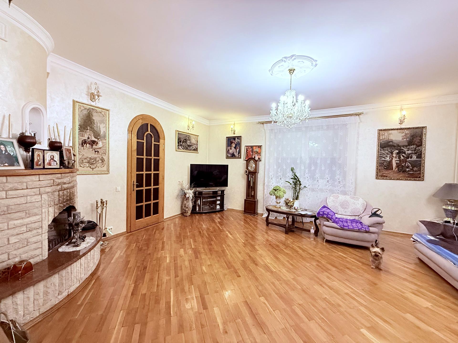 Перша квартира (найбільша) - дворівнева. Великий зал з каміном, кухня, три окремі кімнати, дві вбиральні, гардеробна.
