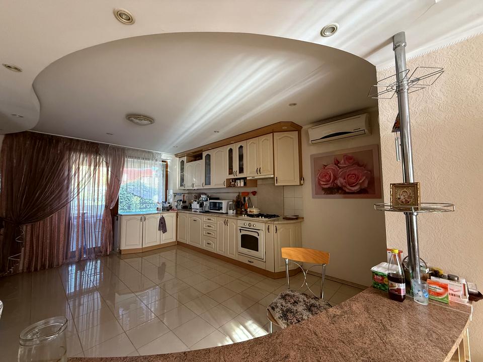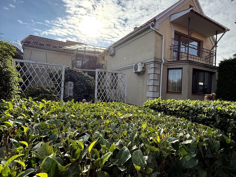 Великі кімнати, кухня-вітальня з каміном, тераса з видом на казкове квітуче подвір'я. На кожному поверсі вбиральні.