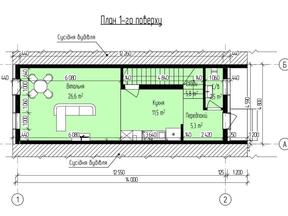Таунхаус, 2 поверхи, 3 кімнати. Матеріал стін - газоблок, фундамент будинку - залізобетон, матеріал перекриттів - збірний залізобетон. Площа ділянки 2 сотки. Висота стелі 3 метра. В будинку 1 балкон. Тип кухні - кухня-студія. Немає підвалу. Будинок побудований в 2026 році. Своя каналізація. Загальний стан будинку - Без ремонту. Газу немає. Холодна вода - свердловина. Гаряча вода - електричний бойлер. Опалення котел електричний. Кількість санвузлів: 2. Покриття даху - металочерепиця. Інтернет оптоволоконний. Кількість паркомісць: 1. Кількість спален: 3. Комісія за послуги 2 %