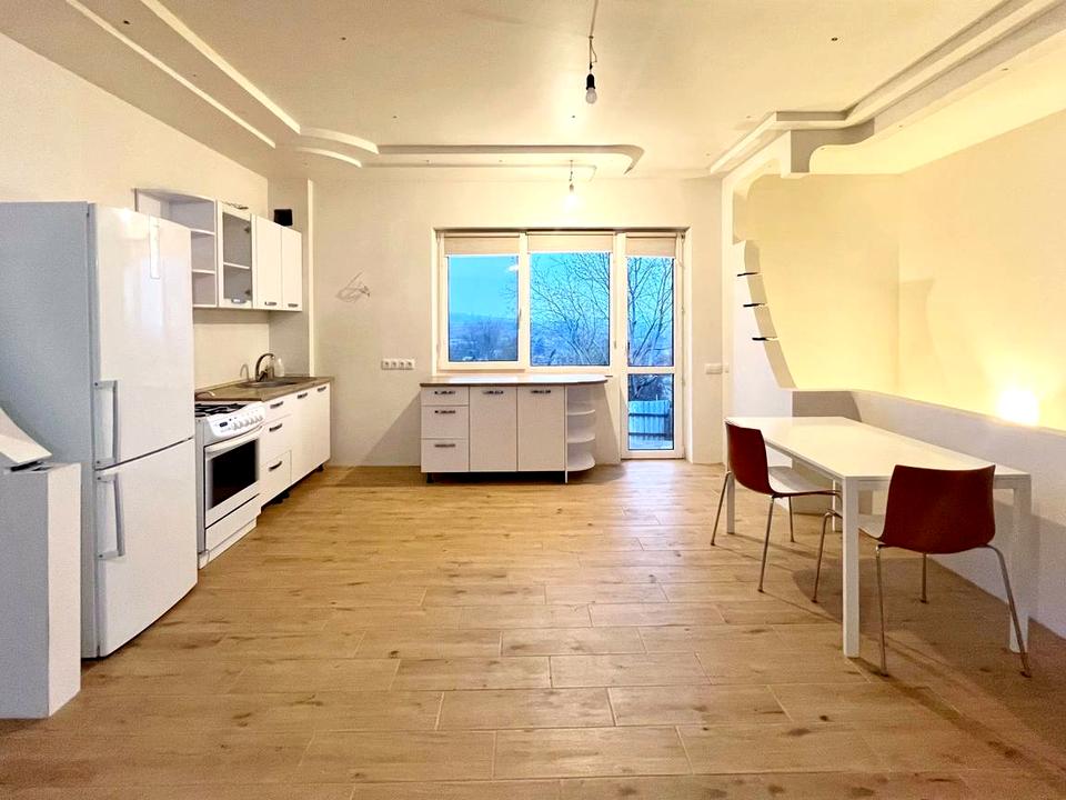 1й поверх - камінний зал+кухня-столова заг.пл. 55кв.м з виходом на балкон, передпокій, санвузол.