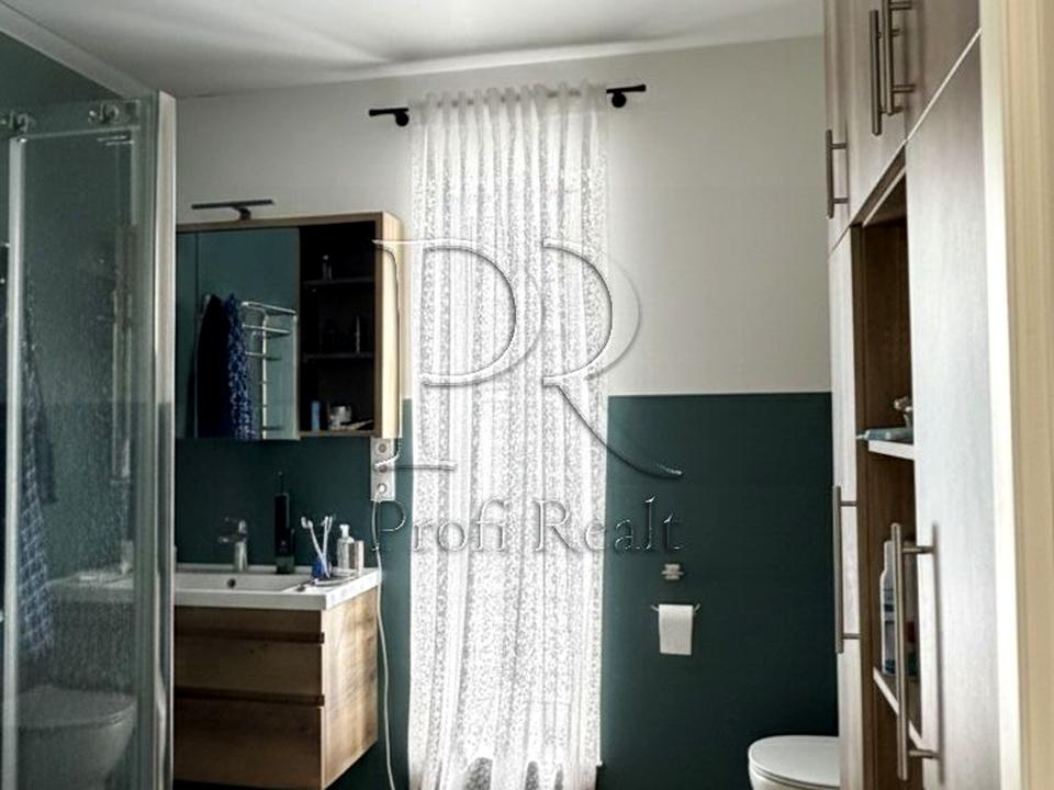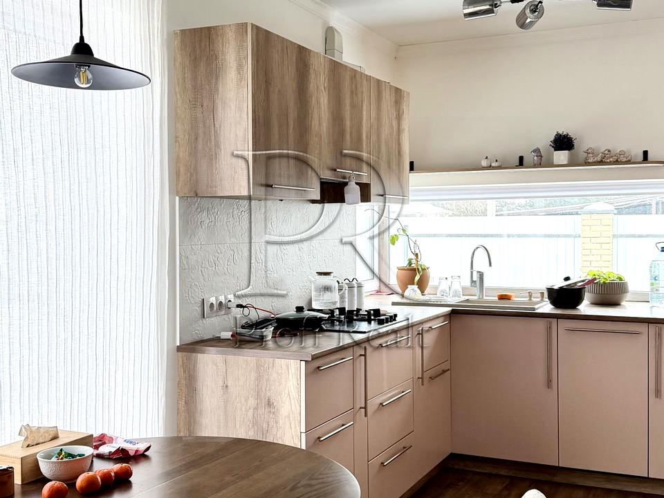 Зручне планування: три окремі кімнати, простора кухня-вітальня, два санвузли, велика тераса. Будинок повністю укомплектований якісними меблями та технікою.