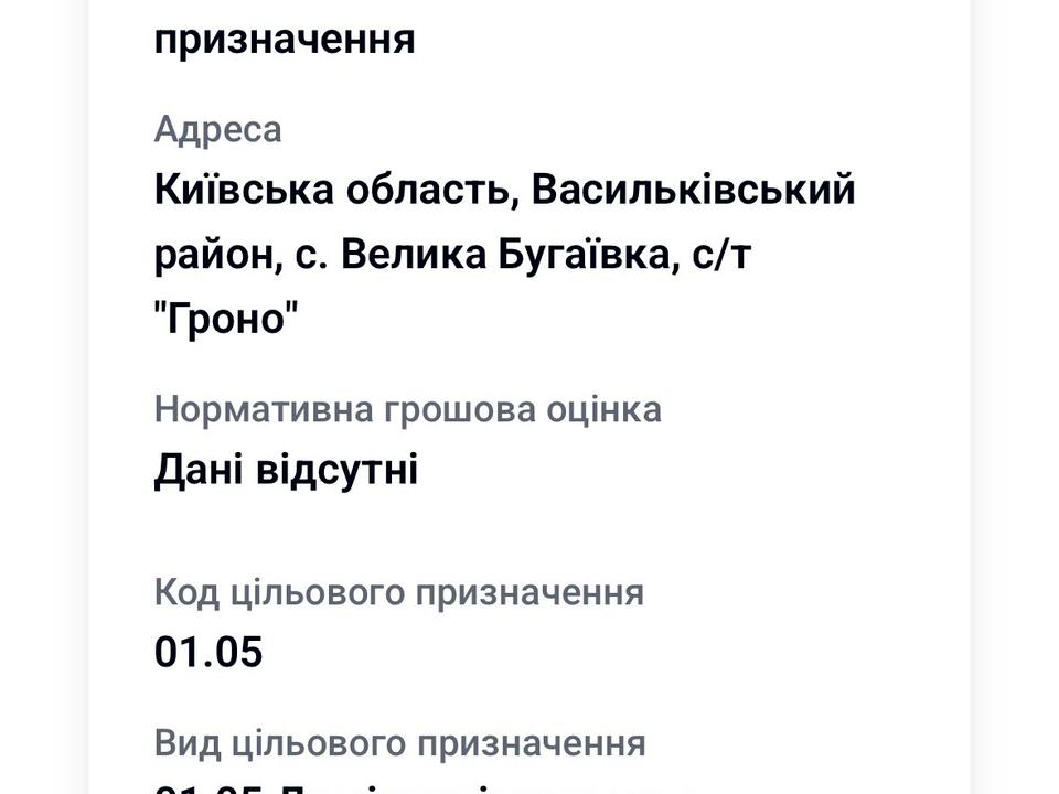 - Цільове призначення: сільськогосподарське (01.05)