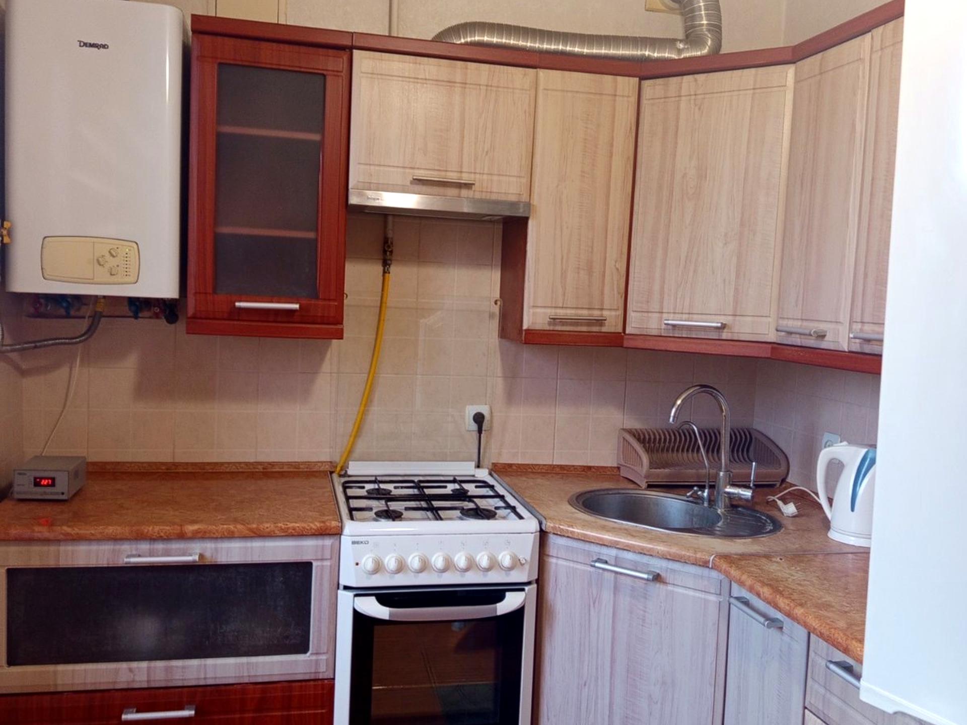 В квартирі 1 кімната. Є газ. У квартирі є Пральна машина, Ванна, Холодильник, Мікрохвильовка, Посуд. Загальний стан квартири - З ремонтом. Гаряча вода - газовий котел. Комісія за послуги 100 %