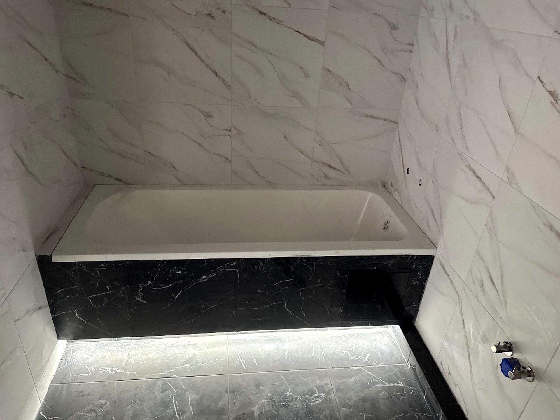 В ванній покладена плитка.