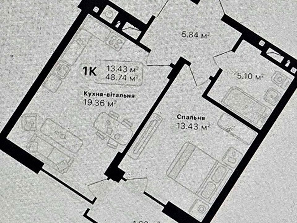 Загальна площа — 48,74 м²