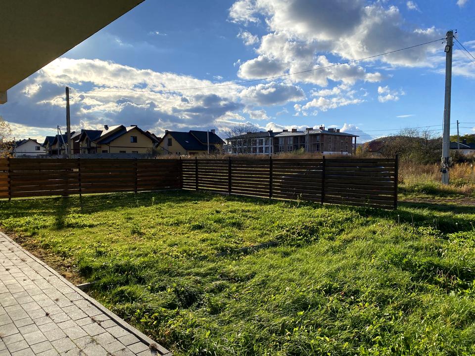 Відокремлена земельна ділянка площею 250-450 м/кв. огороджена дерев'яним парканом. Територія частково замощена бруківкою.