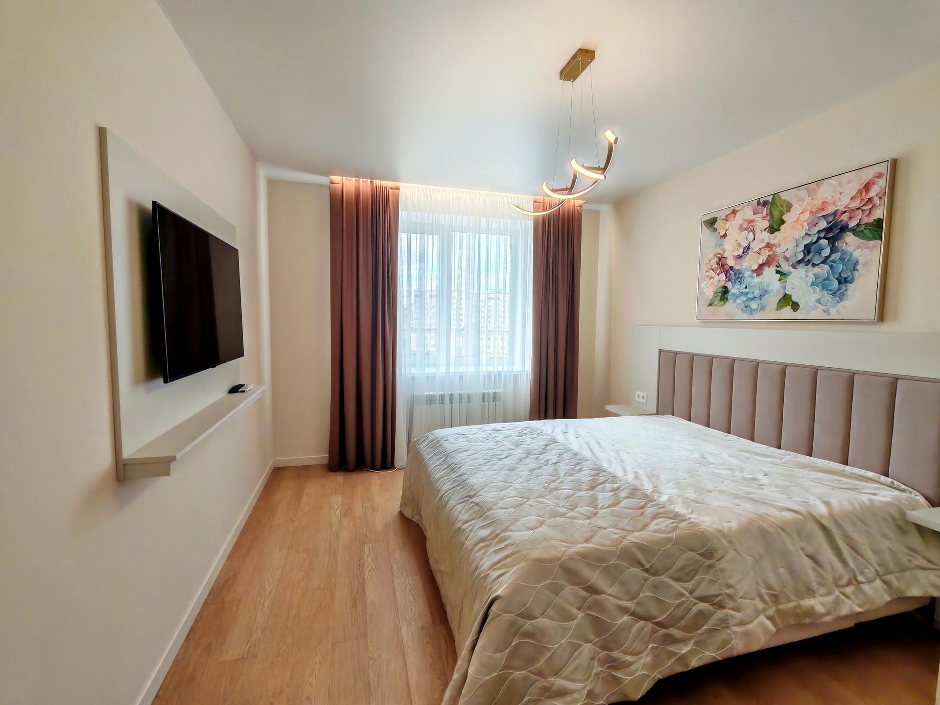 В квартирі 3 кімнати, висота стелі 2.8 метра, Тип будинку - Спец. проект. Немає газу, кухонна плита електрична. Є балкон. У квартирі є Телевізор, Підігрів підлоги, Кондиціонер, Пральна машина, Сушильна машина, Ванна, Холодильник, Мікрохвильовка, Посудомийна машина. Будинок побудований в 2024 році. Загальний стан квартири - З ремонтом. Гаряча вода - електричний бойлер. Кількість санвузлів: 1. Інтернет оптоволоконний. Працює без світла - вода, опалення, інтернет, ліфт, резервне живлення квартири (акумулятори). Тип кухні - окрема кухня. Кількість спален: 2. Немає підземного паркінгу, доступного як укриття. Інфраструктура території: дитячий майданчик, спортивний майданчик, виокремлена зона для вигулу тварин. Комісія за послуги 75 %