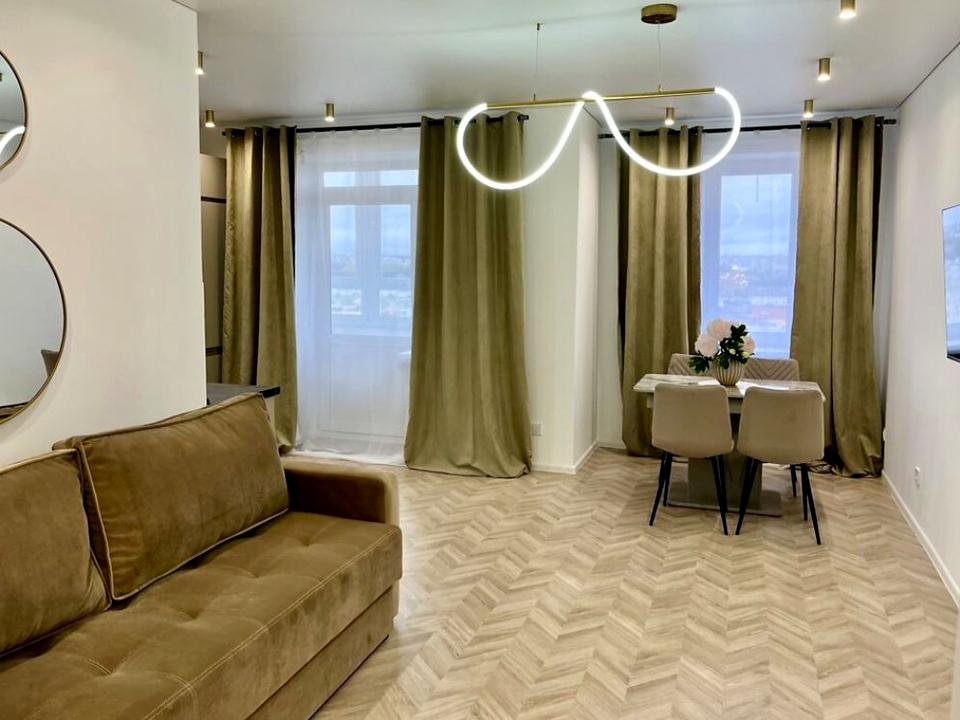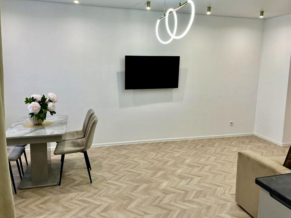 Новий дизайнерський ремонт у світлих тонах, продумане планування, простора кухня-вітальня + окрема спальня.