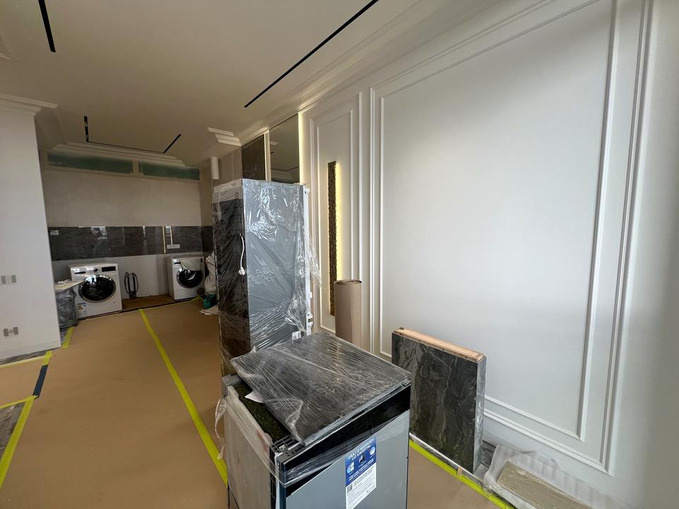 дизайнерський проєкт. Залишилось завершити меблювання. Вбудована кухня готова, техніка закуплена. 2 спальні та 2 санвузли, душова кабіна та ванна кімната.