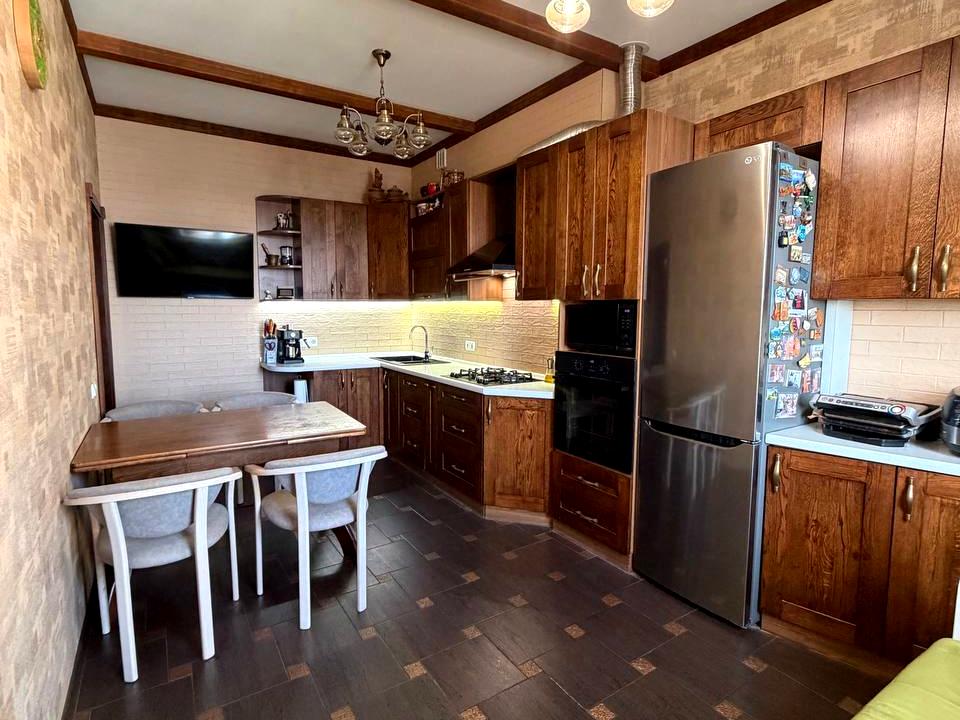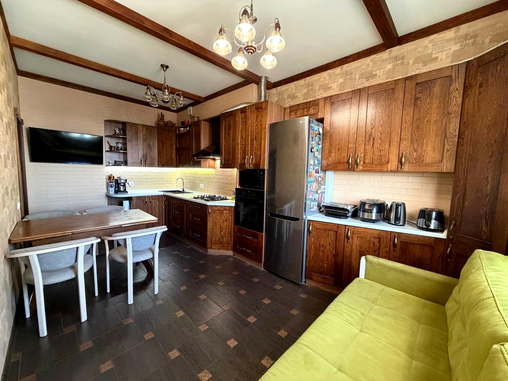 Ремонт затишний, зроблений з якісних матеріалів (дерев'яні двері (сосна) та фасади кухні (дуб), керамограніт та мозаїка у ванній кімнаті, венеціанська штукатурка на стінах)