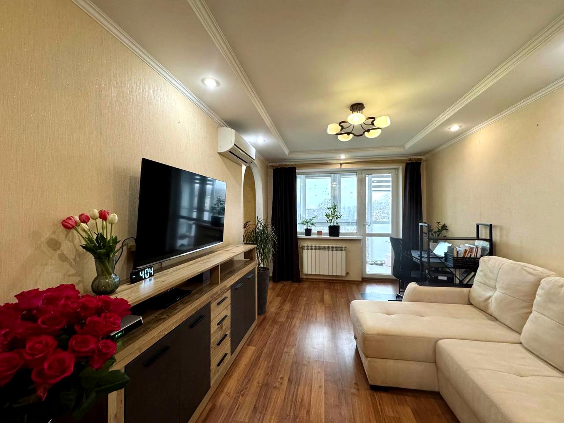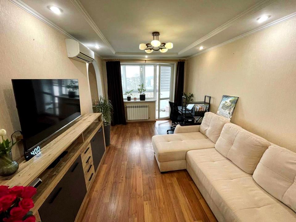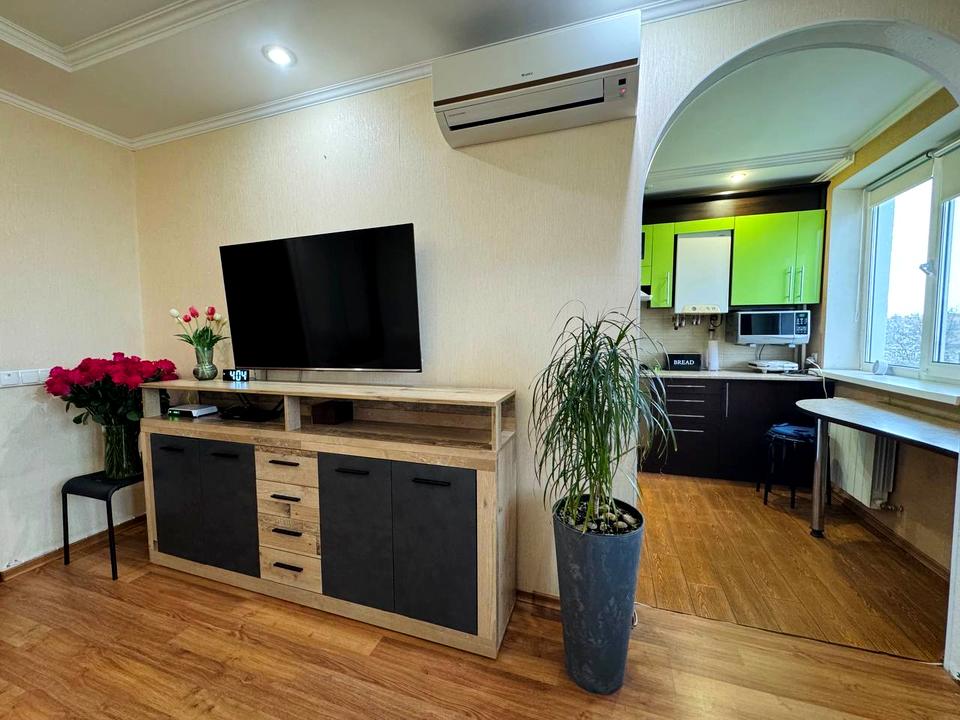Окремі дві житлові кімнати, засклений балкон, суміжний санвузол та кухня. Є два кондиціонери. Дуже охайна, тепла та затишна квартира.