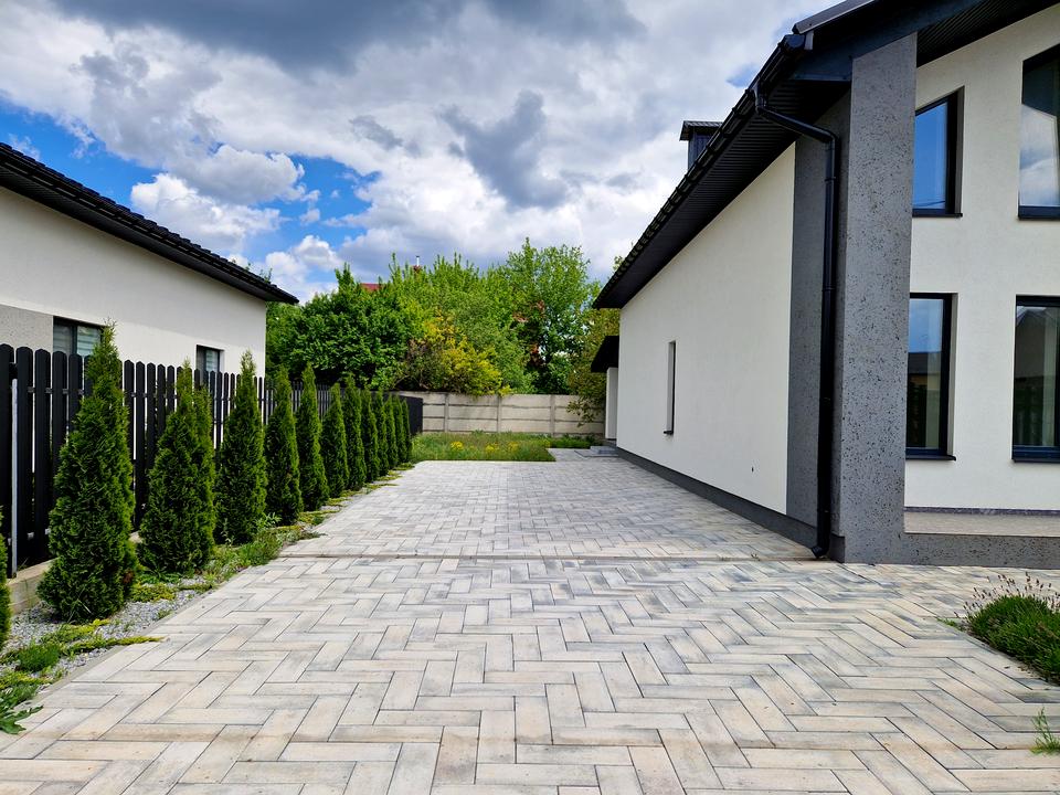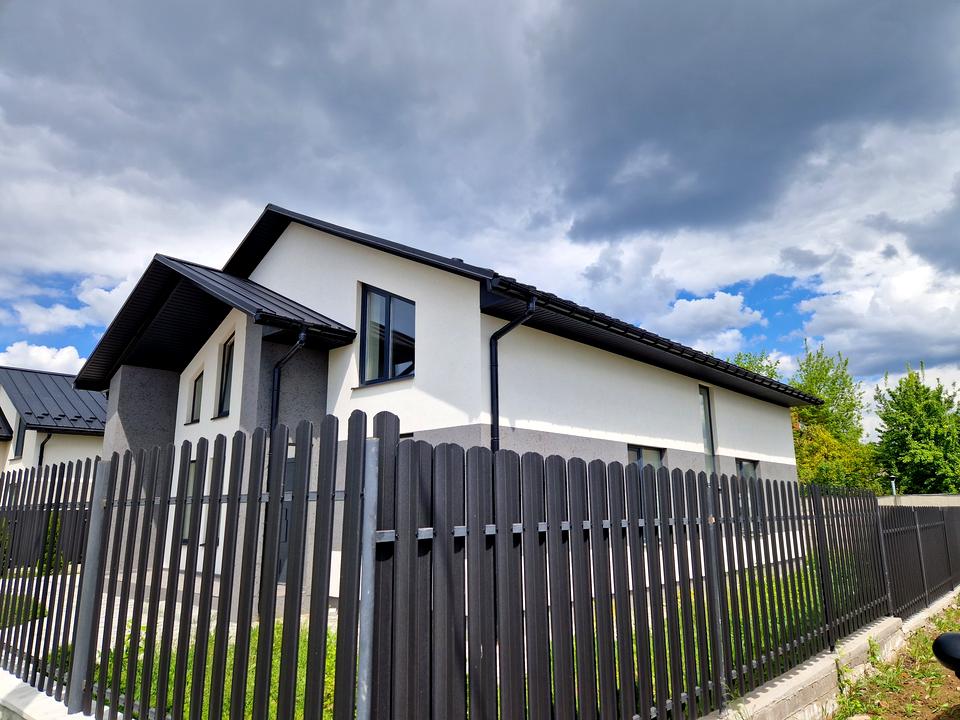 Будинок, 2 поверхи, 5 кімнат. Матеріал стін - цегляний, фундамент будинку - залізобетон, матеріал перекриттів - монолітний залізобетон. Площа ділянки 5 соток. Планування кімнат Роздільне. Є газ. Холодна вода - свердловина, є гаряча вода. Опалення котел електричний. У будинку 2 роздільних санвузла. Проведені. Вхідні двері залізні, сходи бетонні. Покриття підлоги - стяжка. Тип кухні - кухня-студія. Вікна металопластикові, нові. Покриття даху - металочерепиця. Є огорожа. У будинку є Підігрів підлоги. Будинок побудований в 2024 році. Своя каналізація. Загальний стан будинку - Без ремонту. Поруч є супермаркет. Торг доречний, Терміново. Зовнішнє утеплення стін. Працює без світла - газ, опалення. Комісія за послуги 5 %